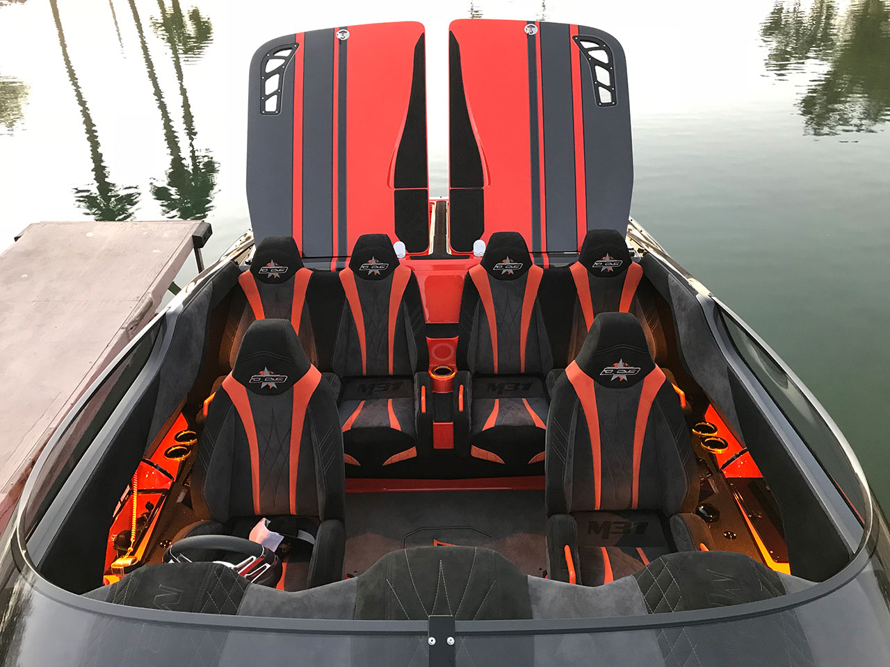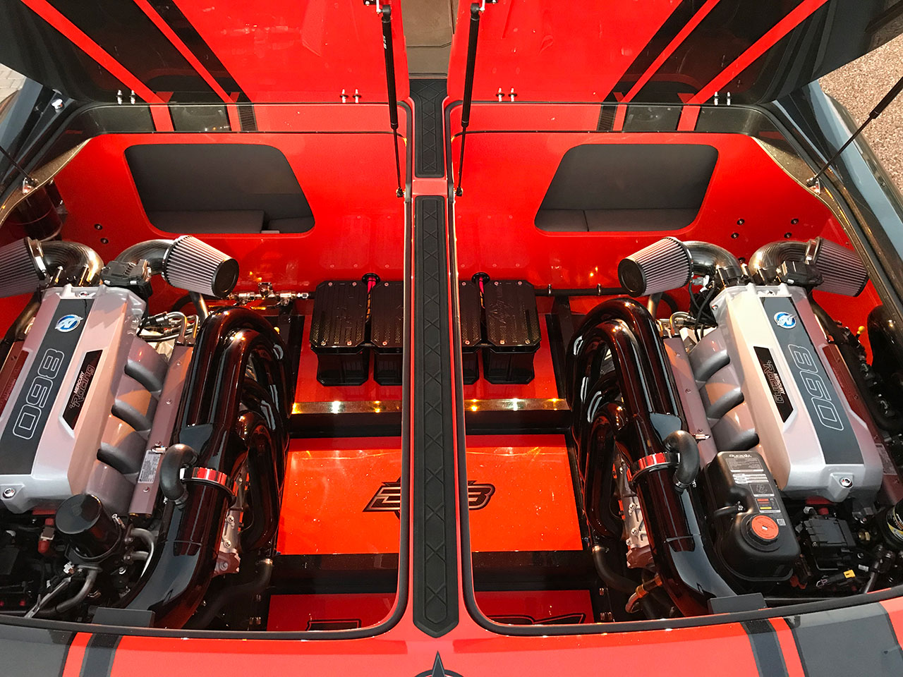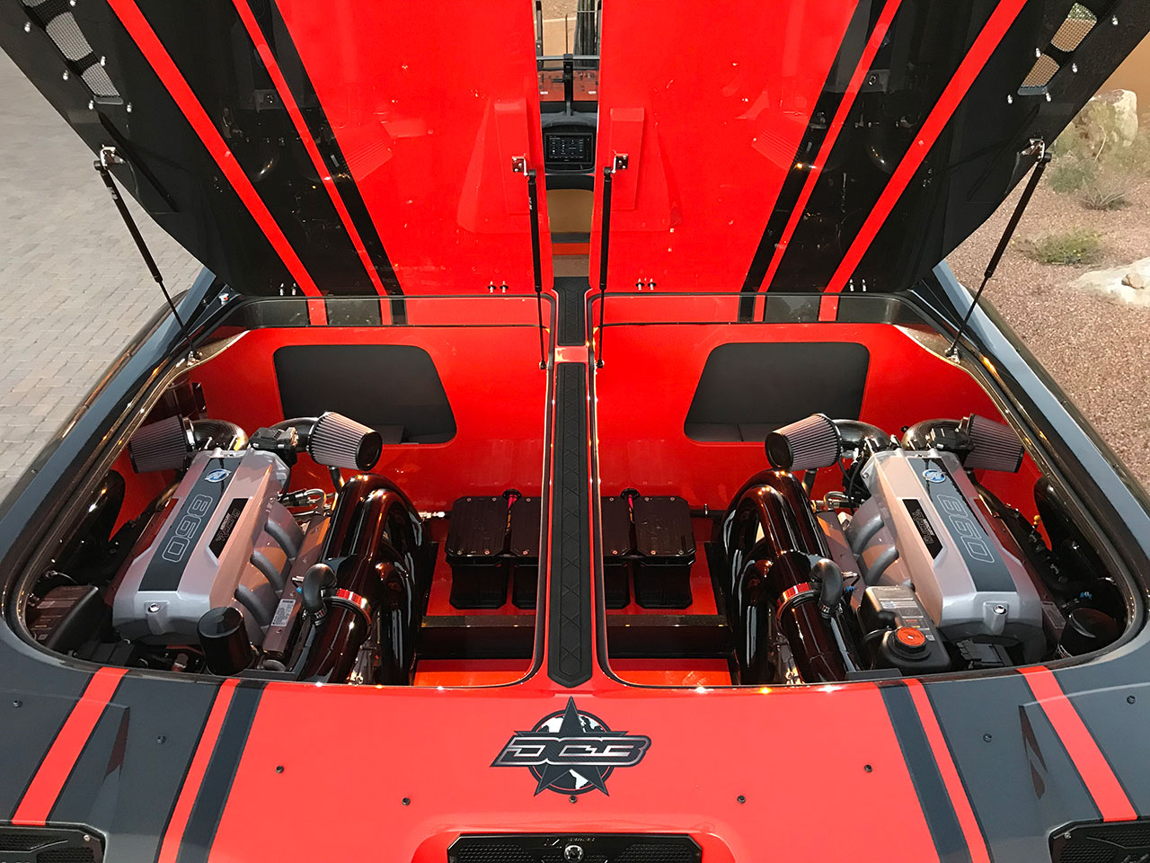 The key to this unique build however, is the twin Merc 860/SSM#6’s that can push the craft to a whopping 142MPH. And finished with DCB’s high quality interior and technology, this boat epitomizes everything that the brand is. Performance. Craftsmanship. Quality.