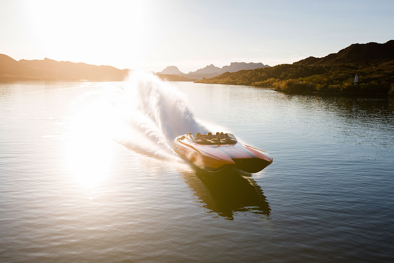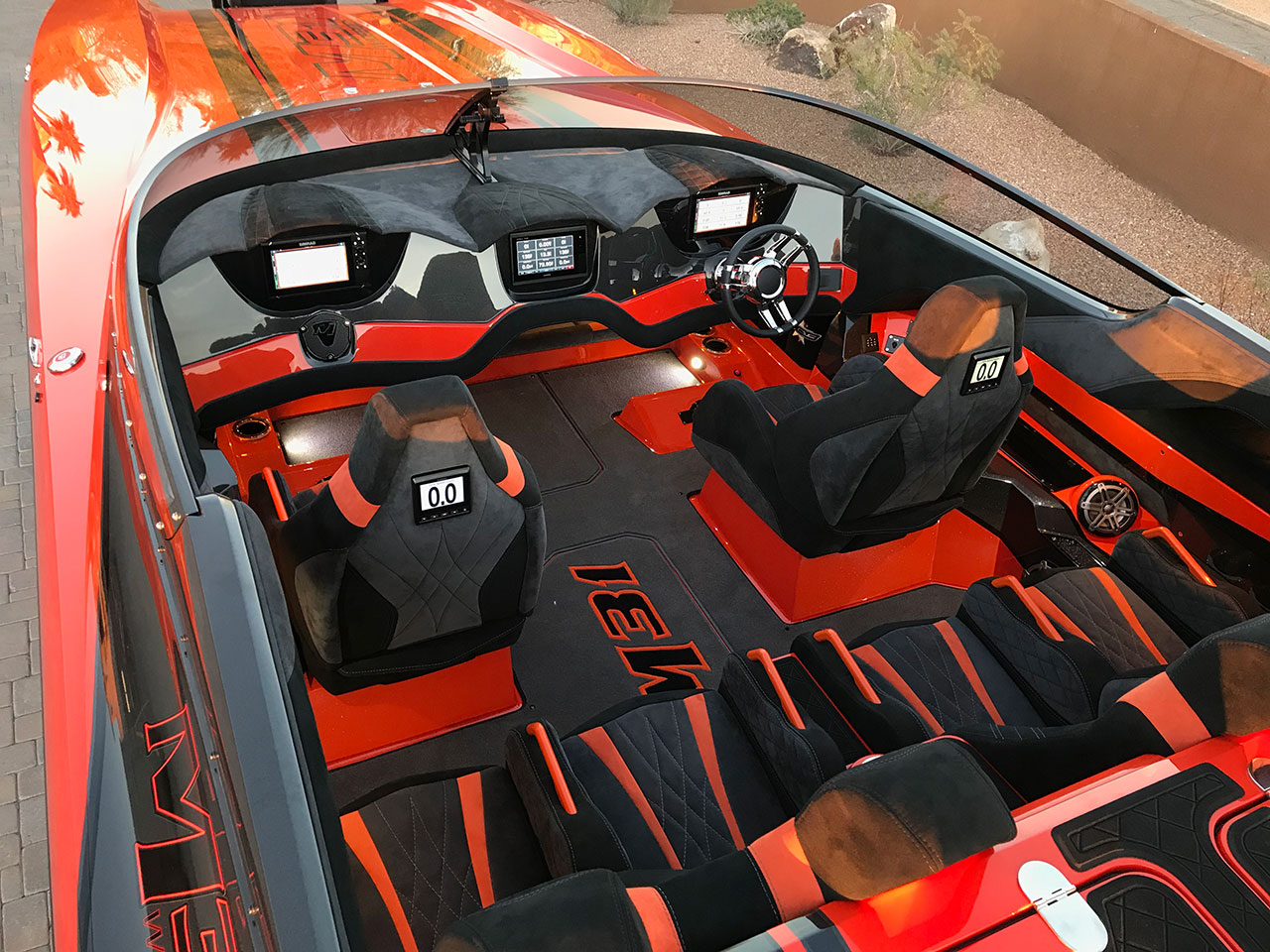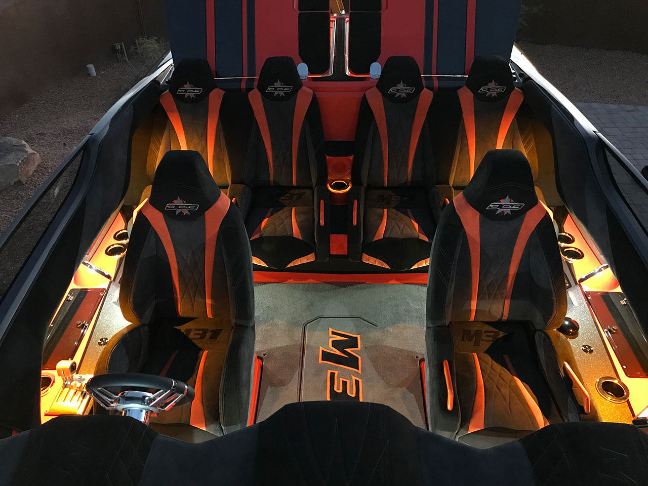 The key to this unique build however, is the twin Merc 860/SSM#6’s that can push the craft to a whopping 142MPH. And finished with DCB’s high quality interior and technology, this boat epitomizes everything that the brand is. Performance. Craftsmanship. Quality.