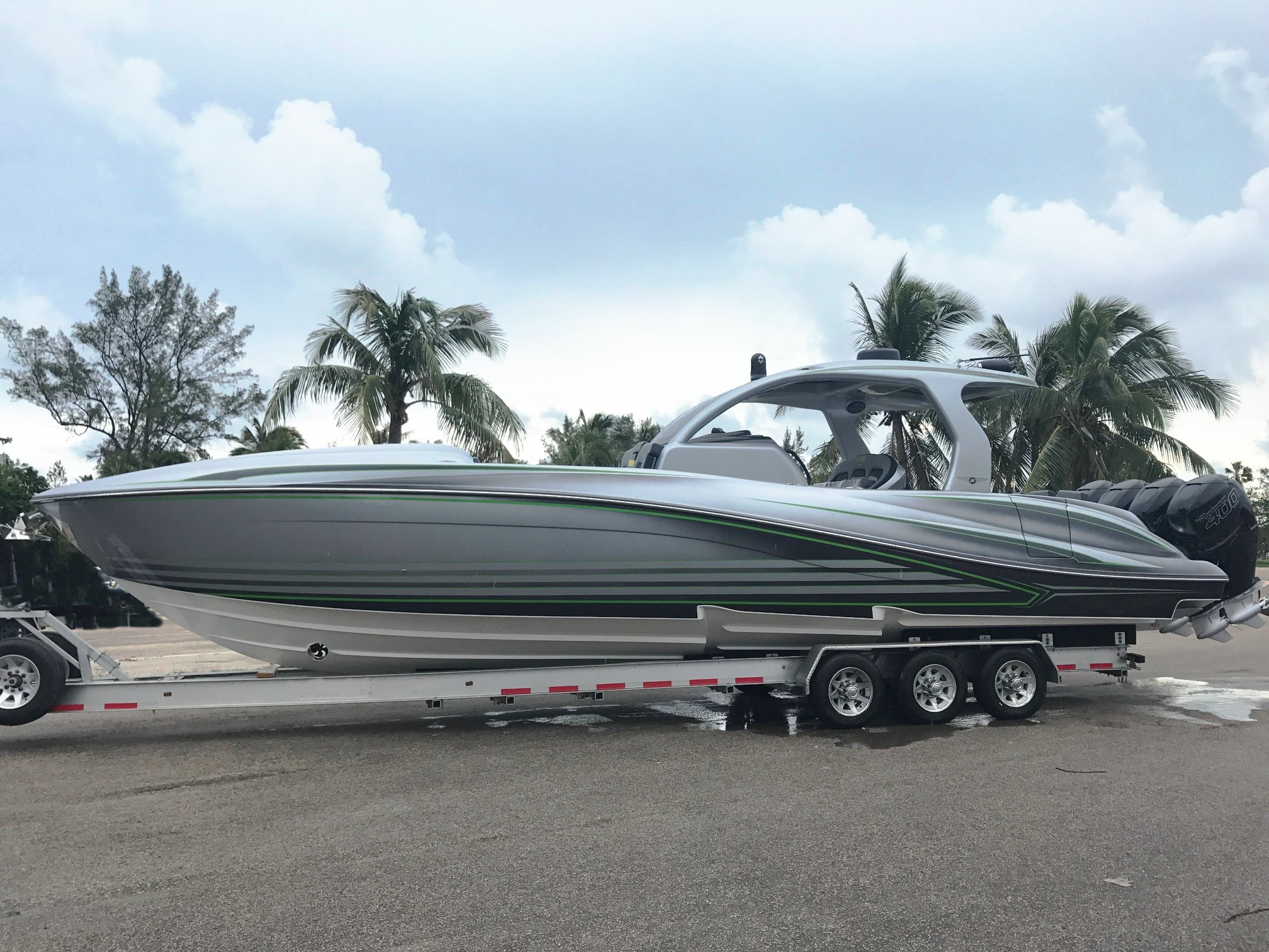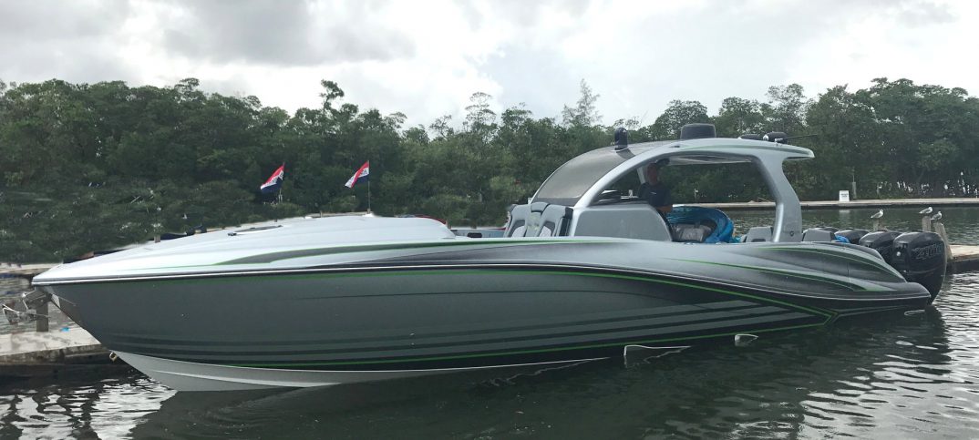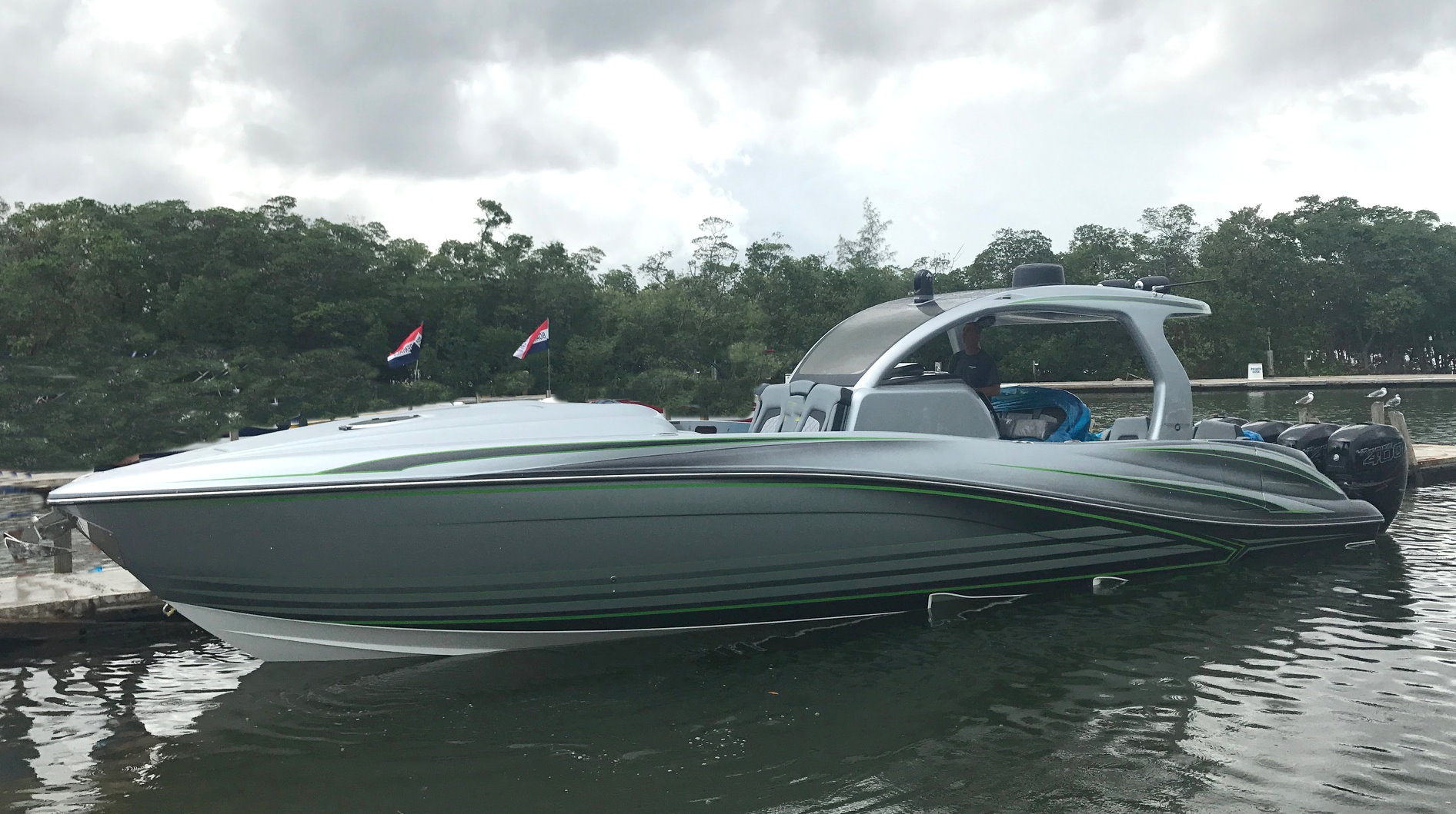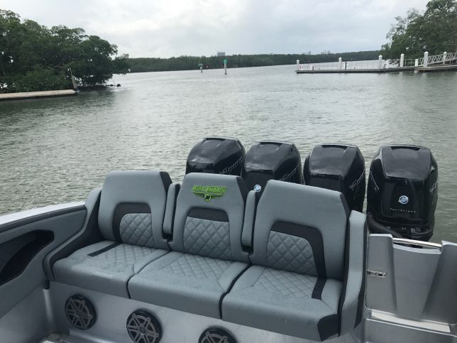 As usual, the boat is equipped with quad Merc 400s that can push it to 80mph.