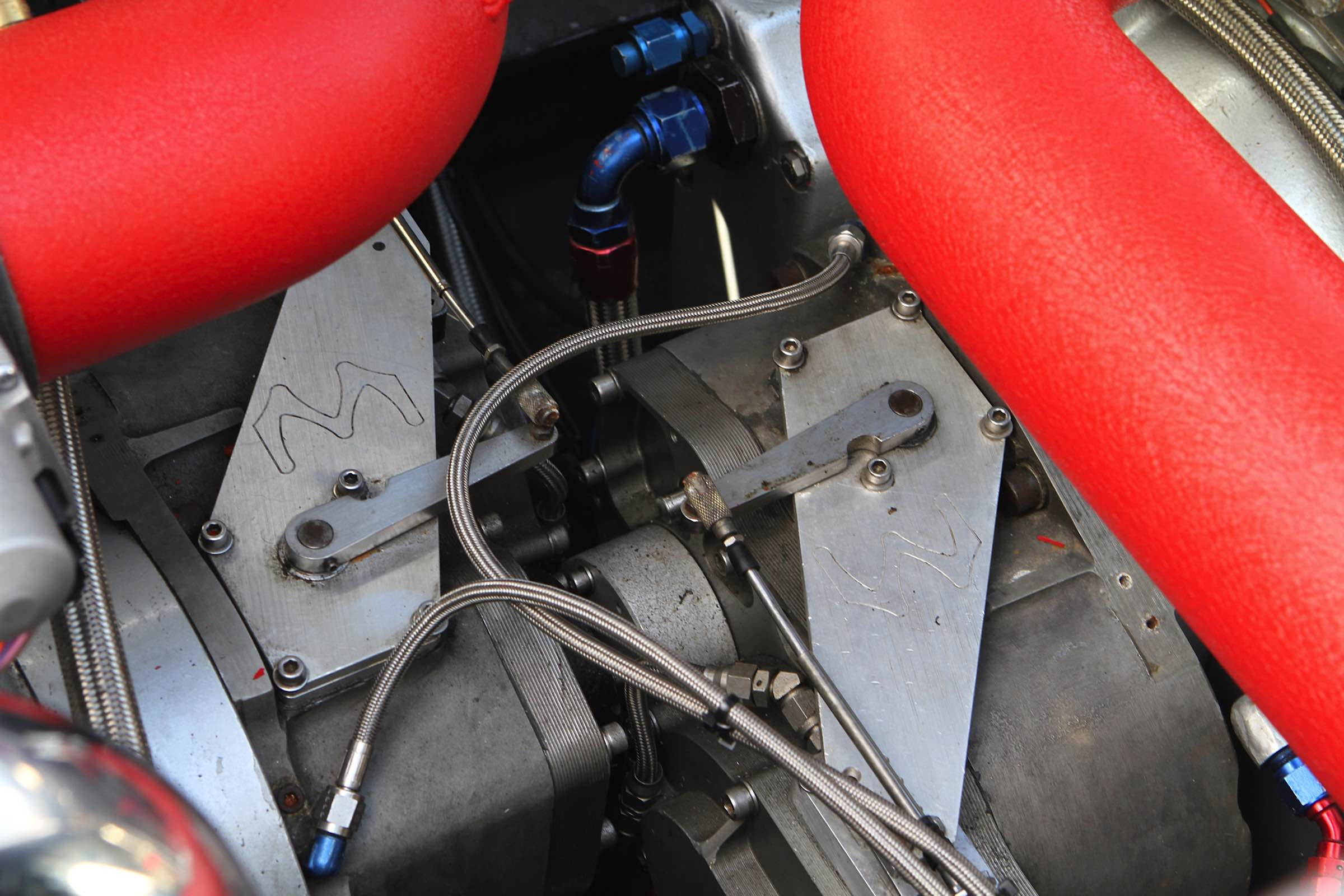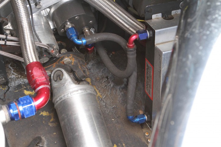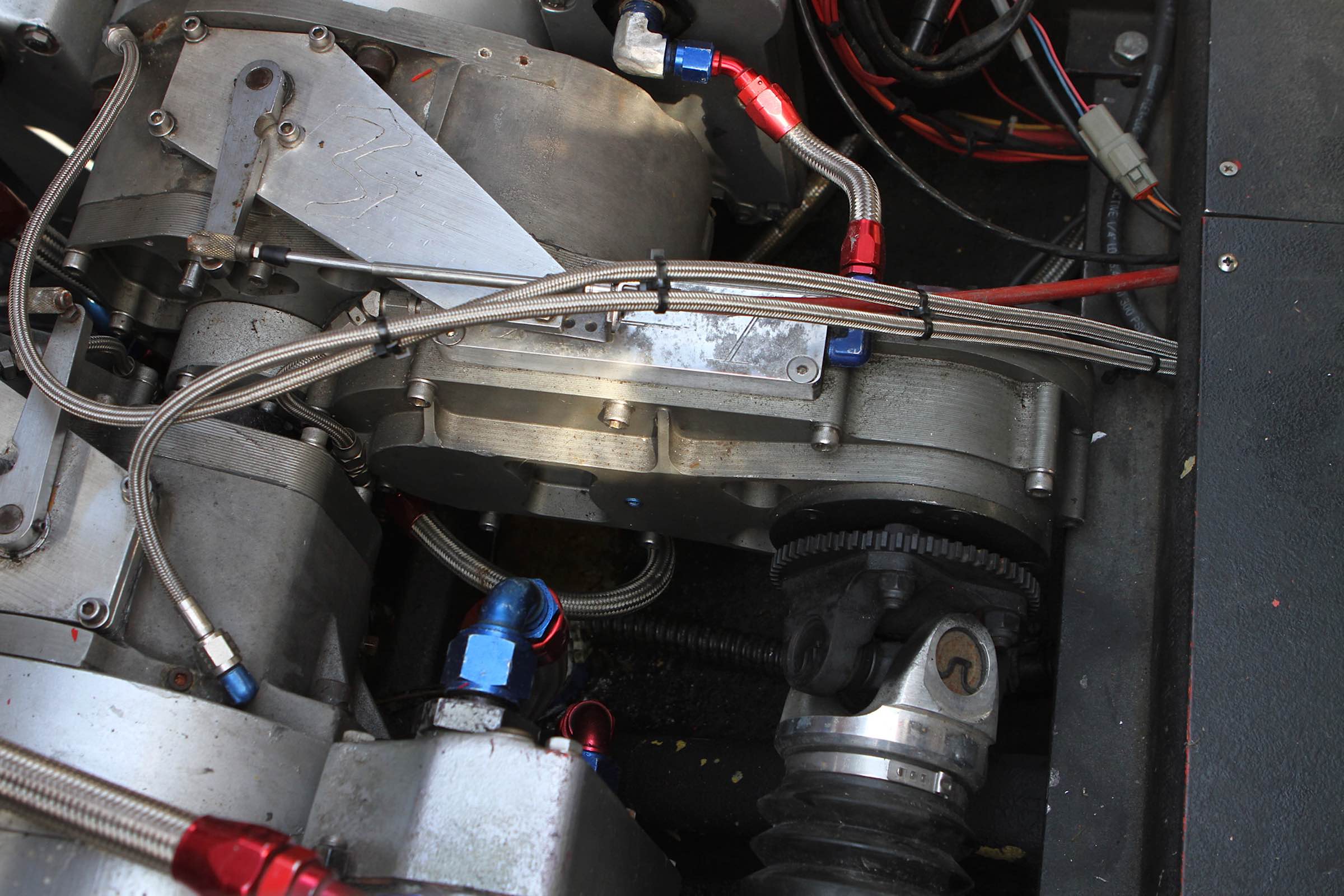 Besides a whole other host of oil capacity and shift/throttle mods, the main course is the engine components: twin LS7s. Why that choice? The answer was simple, Weismann explained: “Power to weight. We looked at a supercharged LS2 6.0 liter in the beginning, but opted for the simplicity of naturally-aspirated motors. The 7,400 RPM redline was very appealing. Fuel economy was highly considered for weight savings as well. We used 50 gallons during a race, compared to 200 gallons from our supercharged big block we had originally. The difference in fuel weight savings was 350 pounds versus 1,400 pounds. We are the first to make this combination, but now they are starting to be used by the bigger companies. The engines themselves are not stock, either.”