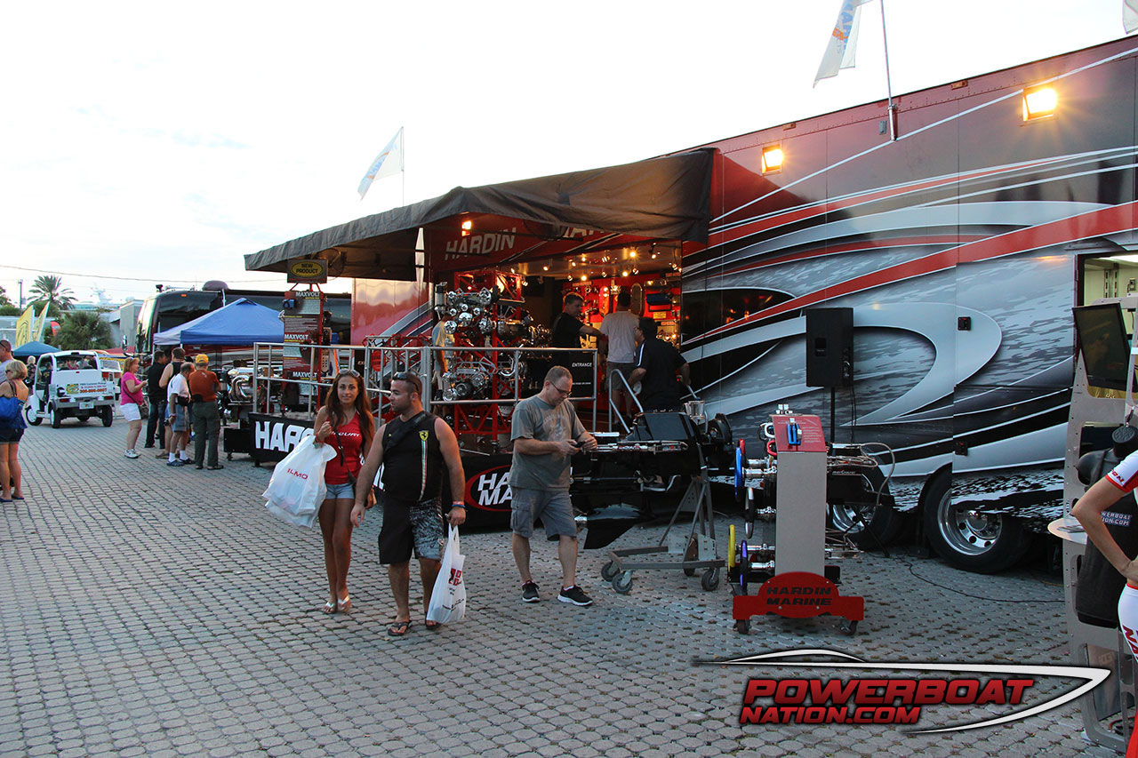For those of you with the love of power boating and all things that resonate with it then you would have literally been overwhelmed with Stu Jones Key West Poker Run Village this year. While the village has morphed over the years in shape and size it would seem that Stu’s experience and careful choice of vendor selection has made it liken to a high end shopping mall for power boaters. The attendance seemed as strong if not stronger than ever with booths and vendors open as late as 11:00PM trying to accommodate all the visitors. From displays, to hospitality trailers, manufacture support, as well as new boat displays. Highlights of the show would have been Dustin Whipple’s new Outerlimits, Chief Performance total refit of their support trailer with a bevy of engine offerings, Hardin Marine’s new interactive product support trailer, and of course we would remiss not to mention the Powerboat Nation Billet display booth run by a bevy of beauties. Honorable mention for attendance would have to be the Mercury Racing Apparel sales booth that always seemed to have a line out front.