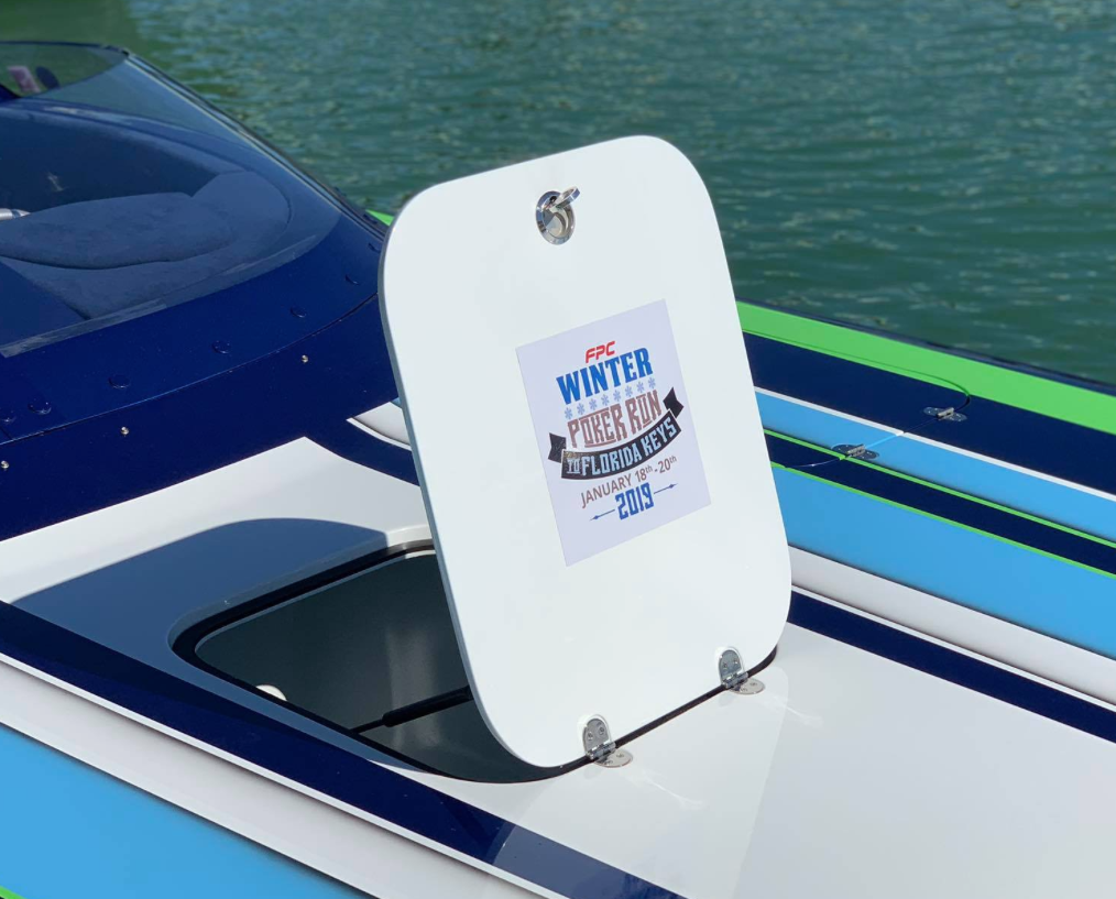 Later that day, teams stopped by the FPC hospitality suite for a happy hour and to play out their poker cards. Congratulations to Barry and Stephanie Henson of Tennessee, who pulled the best poker hand and won FPC prizes along with a customized AO Cooler—in spite of the fact that their Nor-Tech 43 Supercat had an engine failure a day earlier and had to be trailered back to Miami.