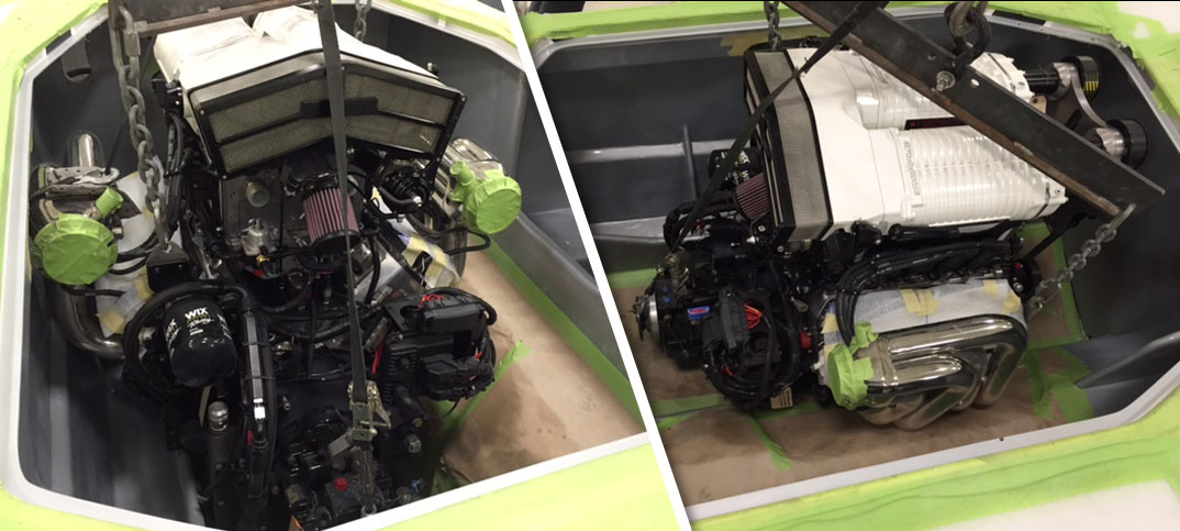 FACTS from Bill Pyburn: “I have had my boat in the mid 190’s numerous times” Running 93 Pump Gas with 11 lbs of boost, running 6800, on a 40″ pitch, we have seen, 195 mph, 197 mph, 193mph and many many runs into the 170’s effortlessly.” The engines peak power is at 19 lbs of boost so there’s much more left in it! Bill went on to say “the amount of power from these engines is completely like nothing else out there.”