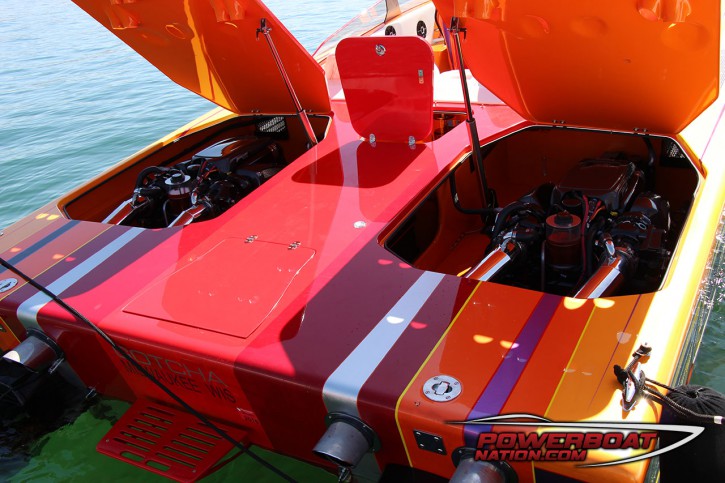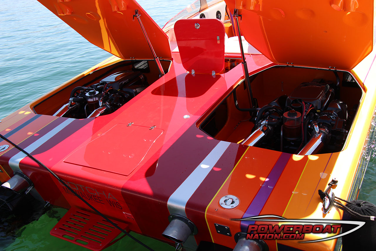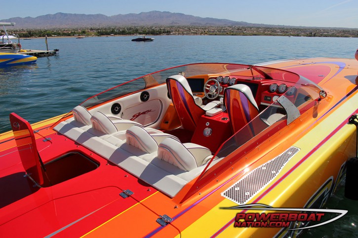 A few boats just catch everyone’s eye and the big 46 SKATER “GOTCHA”is most certainly one of those. Powerboat Nation had the great privilege to be able to climb all over this spectacular build right after it splashed at Lake Havasu.