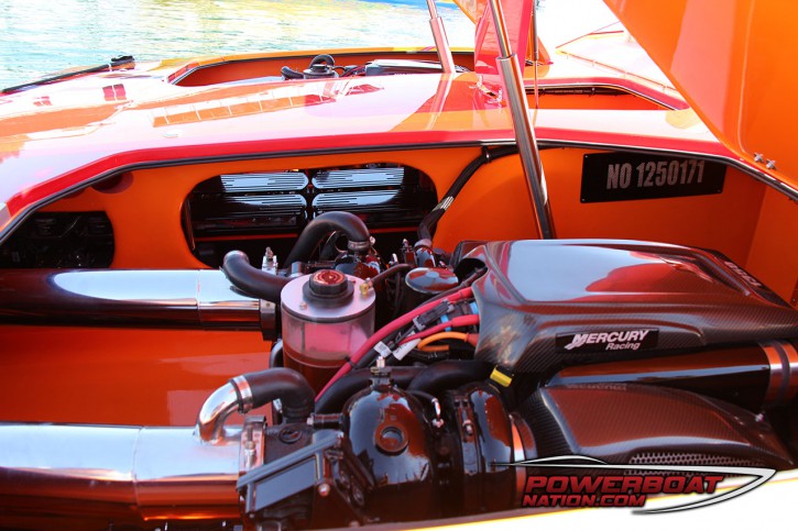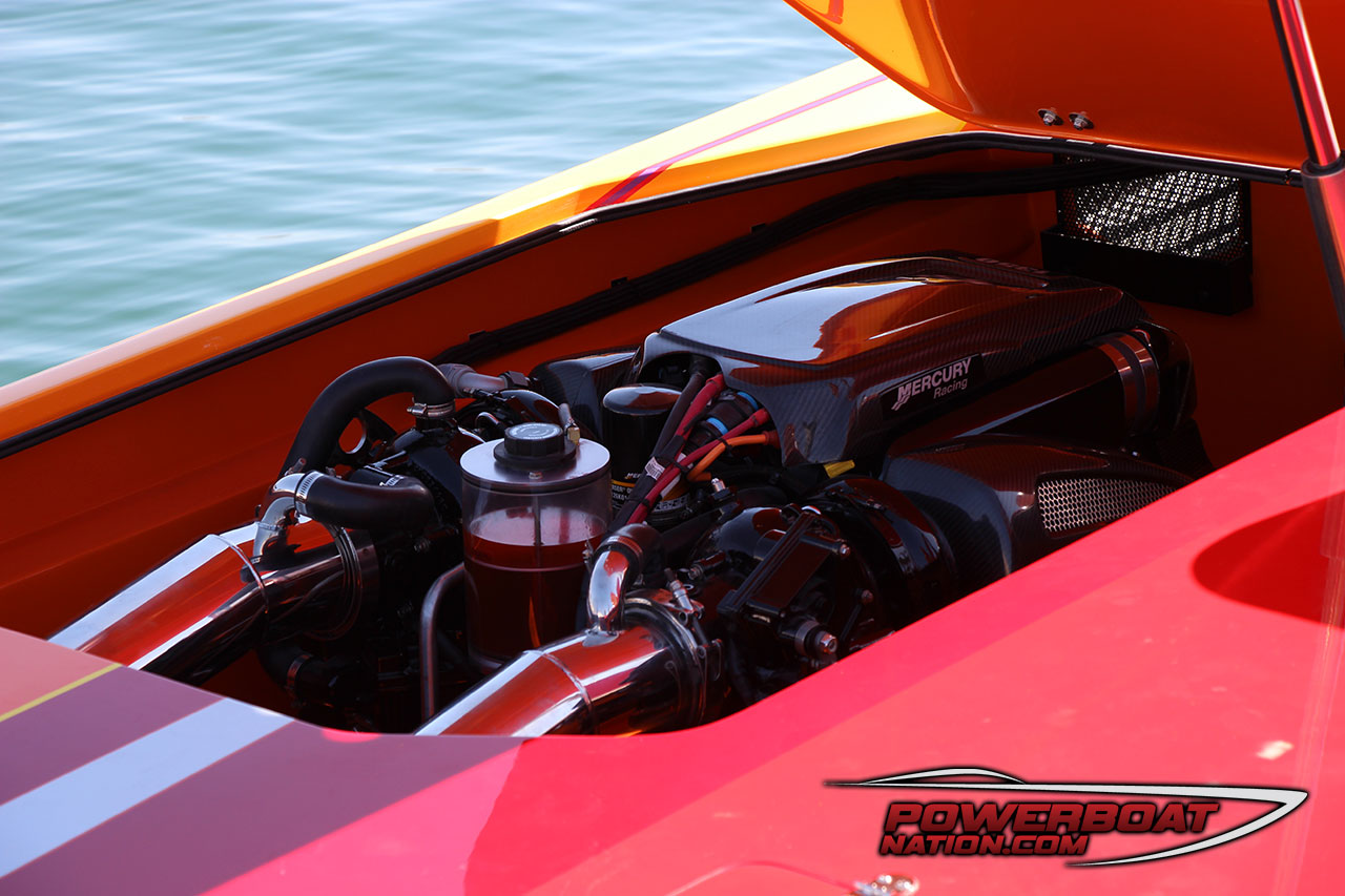 A special build from Skater Powerboats this 46 is rigged with Mercury Racing QC4v 1350 Turbo Motor giving the boat a top speed of just over 160 with great acceleration, easy shifting with DTS. But most important to the owner is the easy 150 MPH cruise.