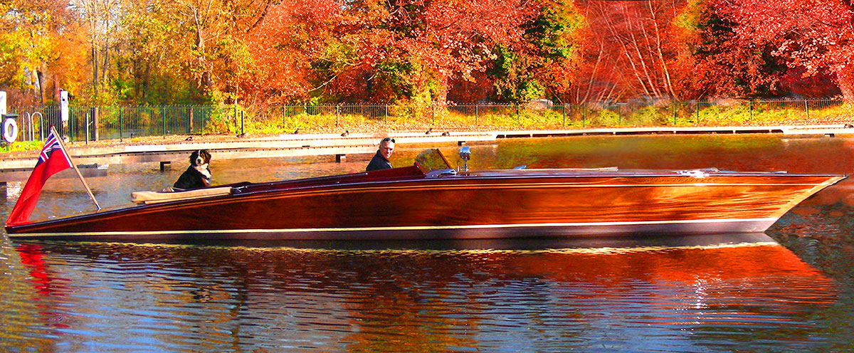 The 31-foot Riverbreeze sports 35 total coats of lacquer giving it that immeasurable depth when looking at the wood grain finish and en electric powertrain that lets her glide smoothly and silently across the water like a beautiful, graceful woman.