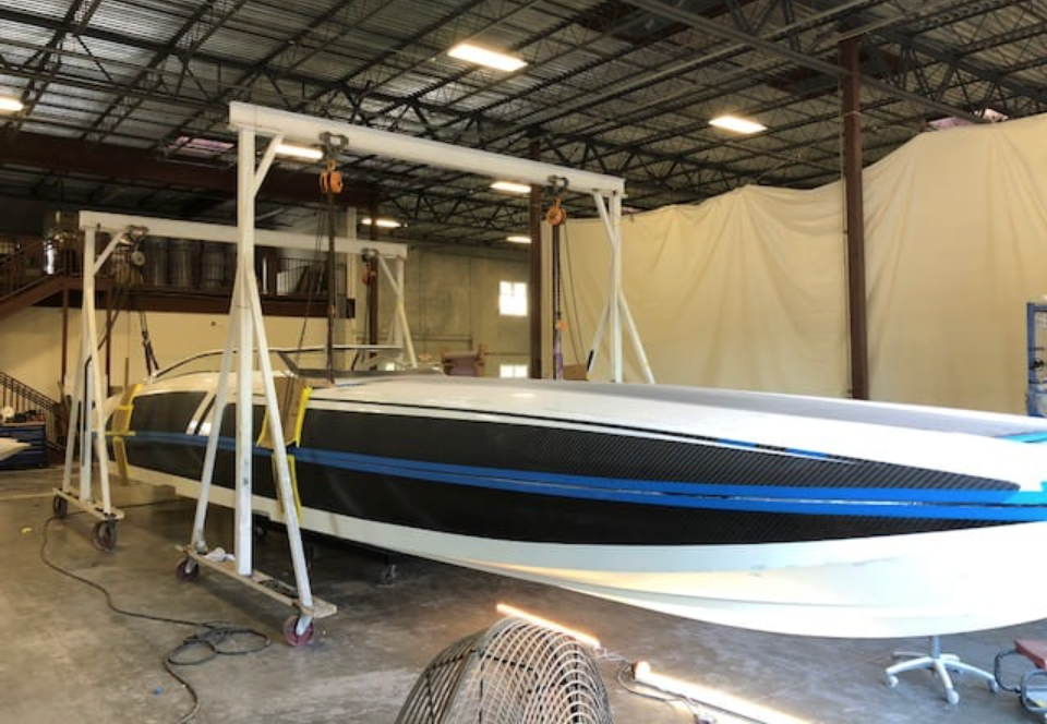 The Donzi 44, an all carbon-fiber tunnel hull with a 12-foot beam, is currently being assembled at Wilson Composites of Fort Pierce, FL, according to Iconic Marine sales and marketing specialist Billy Moore. Wilson Composites spearheaded the design and construction side of the build, which was then seen by Iconic COO Joe Curran, who acquired the boat’s molds.