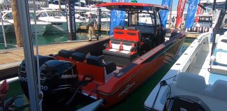 The 44 was designed to be powered by four Mercury Racing Verado 400R outboards, and offer a more open-cockpit type of configuration, with six bucket seats with a lounge area. Moore said the boat will be unique in several different ways. “Nobody has built this type of boat in this type of configuration,” he says. “The cockpit layout and just the overall difference of the boat is going to really stand out.”