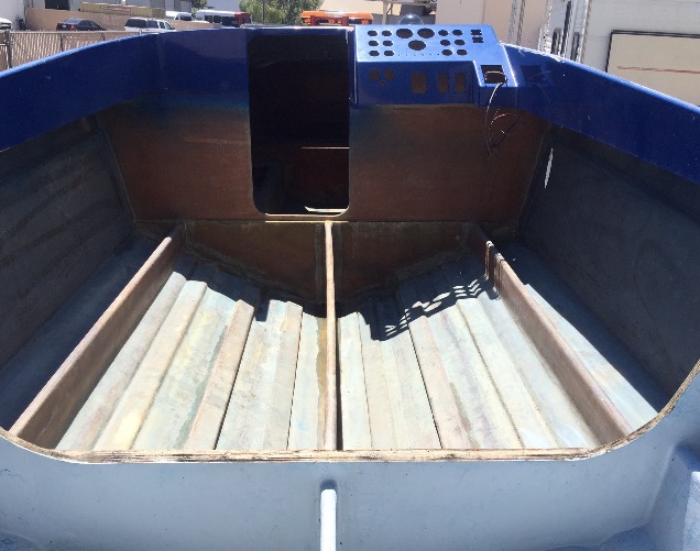 Boostpower started the transformation by gutting the boat, stripping it down to a bare hull, filling in the transom, and creating an all new canvas to work their magic with.