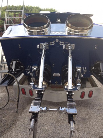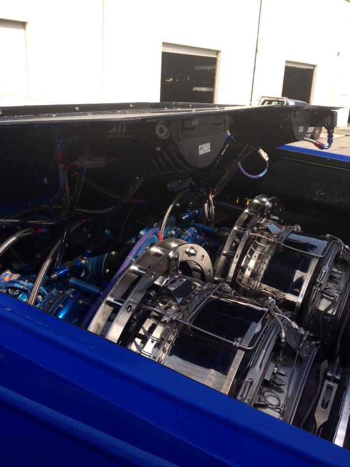 For over a year the Team at Miss GEICO Racing MISS GEICO RACING | Extreme Unlimited Class Racing under the leadership of Gary Stray has been transforming the old INXS Race Boat into a modern marvel now rigged with Twin Lycoming L13-703 coupling the 3700 total HP to Arneson Drives Arneson Surface Drives, this former Multi-Time World and National Champion race boat will now be campaigned as a bad to the bone pleasure boat.