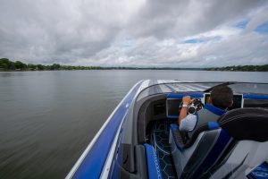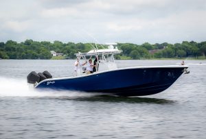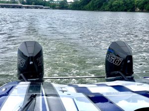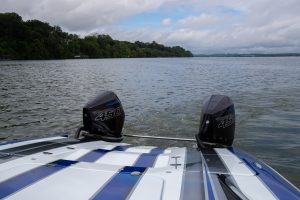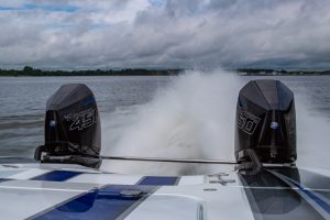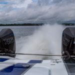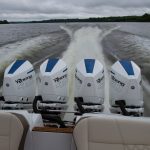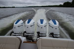“The power and torque is incredible,” he said. “These engines make 100 pounds more torque than a 400R, so now, when you stick four of them on the back of a boat, you really feel the difference. The boat is faster, but what’s most impressive is the acceleration. It gets up to speed in nothing flat, and surprisingly, it makes the same fuel economy at cruise as the 400R. That’s extremely impressive. They’ve done a great job. The motors are just what’d you expect—smooth and quiet, and they’ve got a really cool selectable exhaust function to let it make a little bit more noise. That’s a direct response to customers who have resisted making the switch over to outboards—people who say it’s just not the same experience. Well, now Mercury’s got this selectable exhaust that make the engines sound a little more throaty and more of a muscle feel to them.”