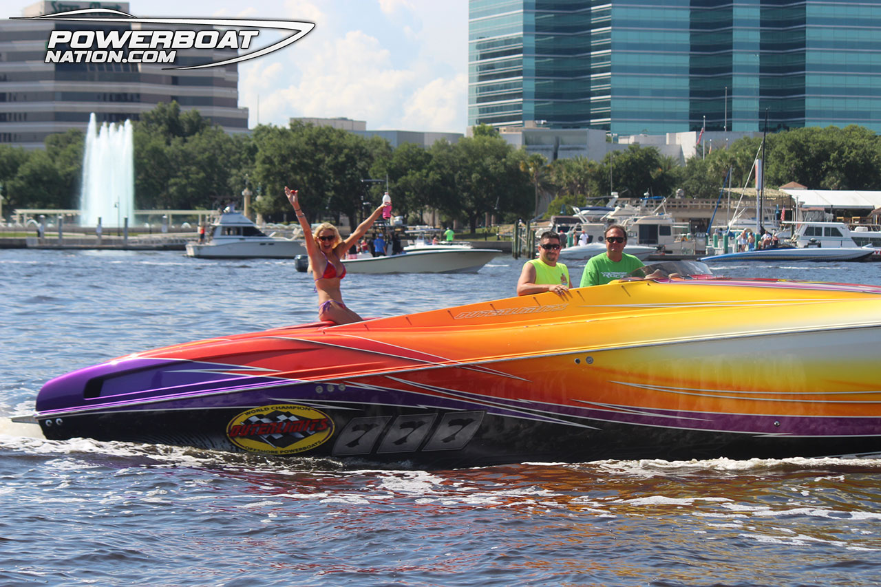 The entire event was a great time and Powerboat Nation was everywhere. Miss PowerBoat Nation Brittany was co-captain on her 42 Outer-limits and ran all over on the PBN cooler racing everyone who would dare challenge her.