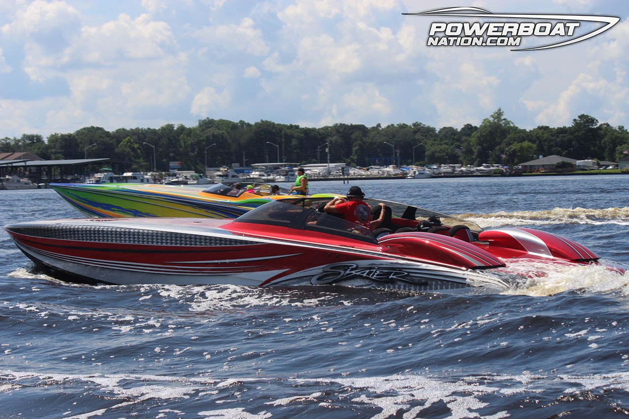 The Team from PowerBoatNation had a great time. Thanks to Chris and Angela Bradley we had a beautiful 426 Skater with Mercury Racing 1350 power to enjoy the run. Friday’s raft up was a blast and brought a great group together. We were able to run upfront at the start of the run and followed right behind Bill Pyburn Jr’s. 388 Skater with Goodwin Competition Power right up to the first card stop.