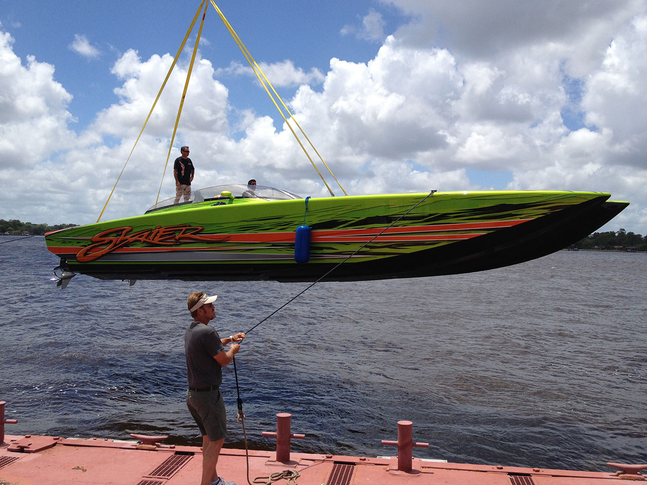 Beyond the 40SS that had just been completely redone, Jeff had just given the green light and commissioned Peter at Skater to build a new state of the art 46′ Skater that would be campaigned to race against the big black corporate giant. Ironically his goal was to develop a host of new safety devices and standards to change the safety aspect of hi performance boating. This boat was to be the safest ever built. Beyond that goal was to even the playing field showing that with the very best the aftermarket had to offer they could be a winner. The new boat would be powered by Smith Power engines, Arneson Industries drives, Hering Propellers, and Hardin Marine accessories. Jeff was a man committed to helping the smaller independent companies wage a competition similar to “David & Goliath”.