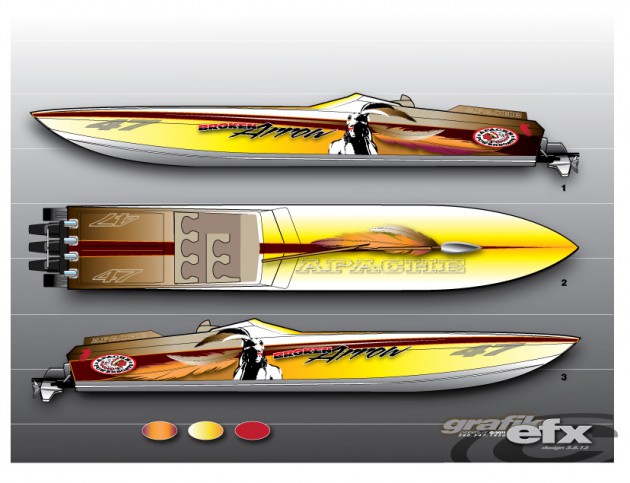 Rich is different than regular boat painters in his approach, customer service, and artistic quality. Using a consultative style, Rich assesses the needs and desires of his clients, gathers all of the information and styling cues needed to design the piece. Then he works with the customer through the entire artistic process, providing updates and receiving feedback. Finally, Rich applies his artistic talent to create innovative and customized pieces of art that delights his clients. The style Quality and customer enthusiasm can be found nowhere else. Currently Richy is doing the art on a 47 Apache in Pompano Beach, Florida. Anyone can paint your boat. Only one guy can make your boat art.