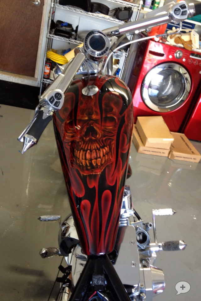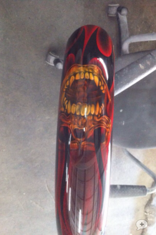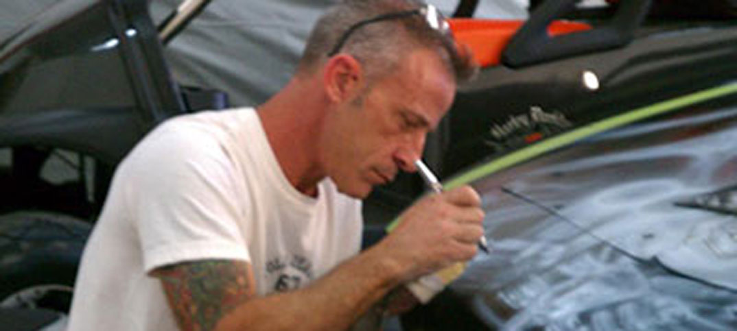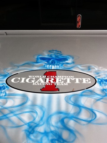 In Miami cigarette style boats are seen gliding across the water at high speeds and moored to waterfront establishments being admired by the public at every turn. There is one King of Boat Art in Miami, Richy “Rich”Lucente. Rich has been applying art to boats, cars and bikes for years. Some of the best pieces he has created have been done when he hasn’t been working at a JOB but while he is on “Free Time”. While employed as the house painter at Cigarette Racing for 3 ½ years and at Fountain for 3 years he had to stay on script, but when he was free to be fully creative and apply art is when things really came alive.