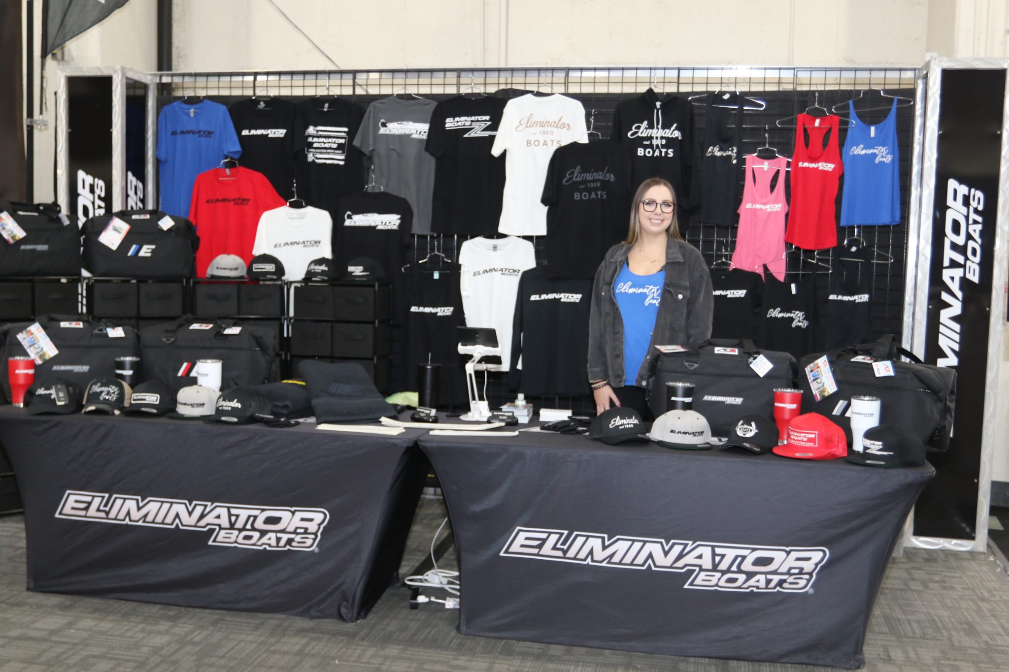 Eliminator Boats of Mira Loma has five of their most popular models on the floor, ranging from their family-friendly Fundeck to their reimagined 36′ Speedster with twin Mercury Racing 1350/1100s–the largest vessel in the company’s lineup. They also have their merchandise booth in full effect, for any and all Eliminator swag. Company owner Jake Fraleigh enjoyed the company’s very busy 50th Anniversary year in 2019 and expects an even better, busier 2020.
