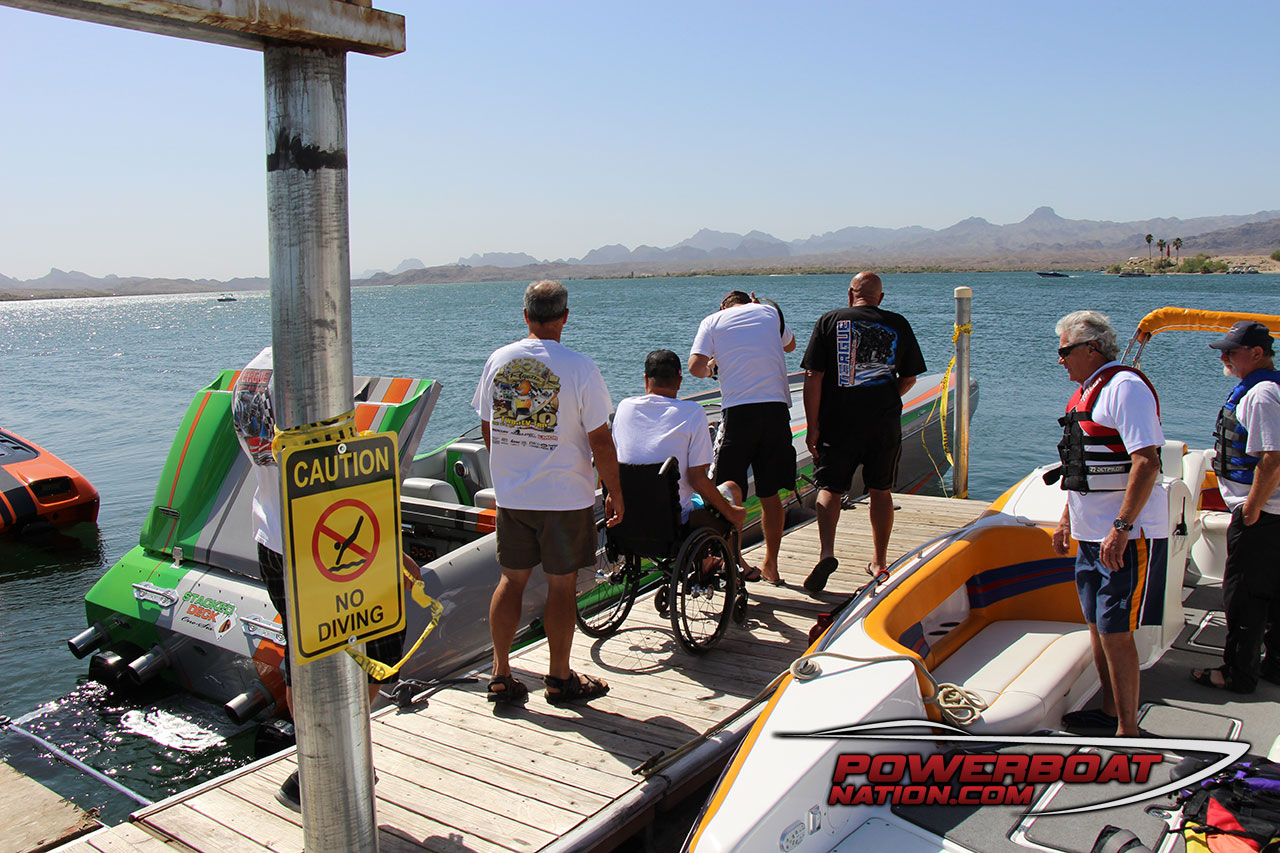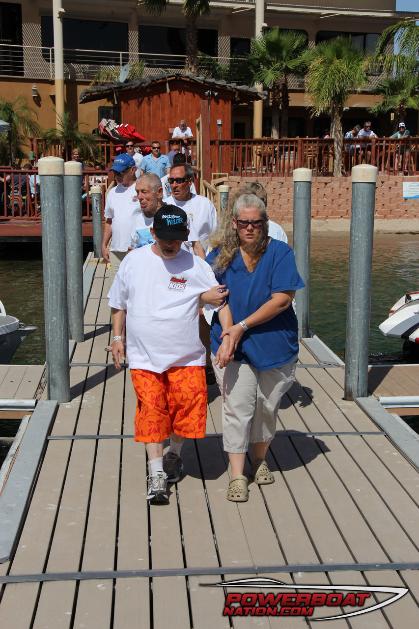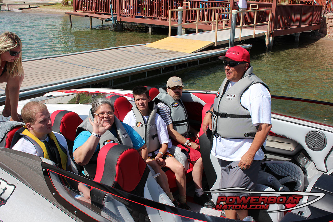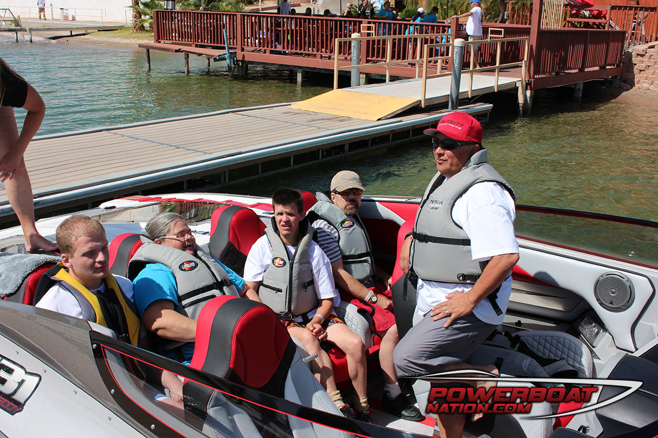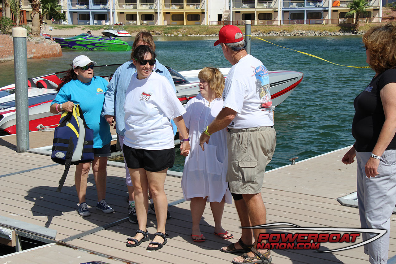 The Desert Storm Poker Run is underway and to kick off the event local boaters and poker run participants from afar turn up to support the 2nd Annual “Krusin’ for Kids” event. Under-privileged and special needs children and adults were given boat rides around Lake Havasu. 18 volunteer boaters took their special guests out for a ‘Kruse’ around the lake, starting at the Nautical Beachfront Resort/Turtle Bar boat docks, and back again to the Nautical’s pool area where they enjoyed a fun-filled day created just for them. The DCB presence was strong with 9 boats in the 18 boat fleet This wonderful ‘Krusin’ for Kids’ event was coordinated by Cherilyn Teague, Lake Racer, and New Horizons.