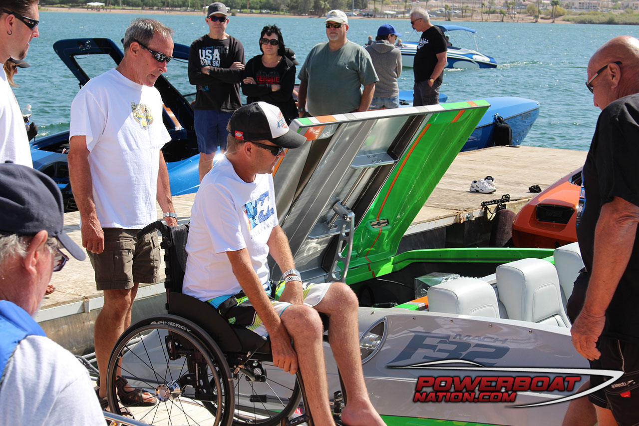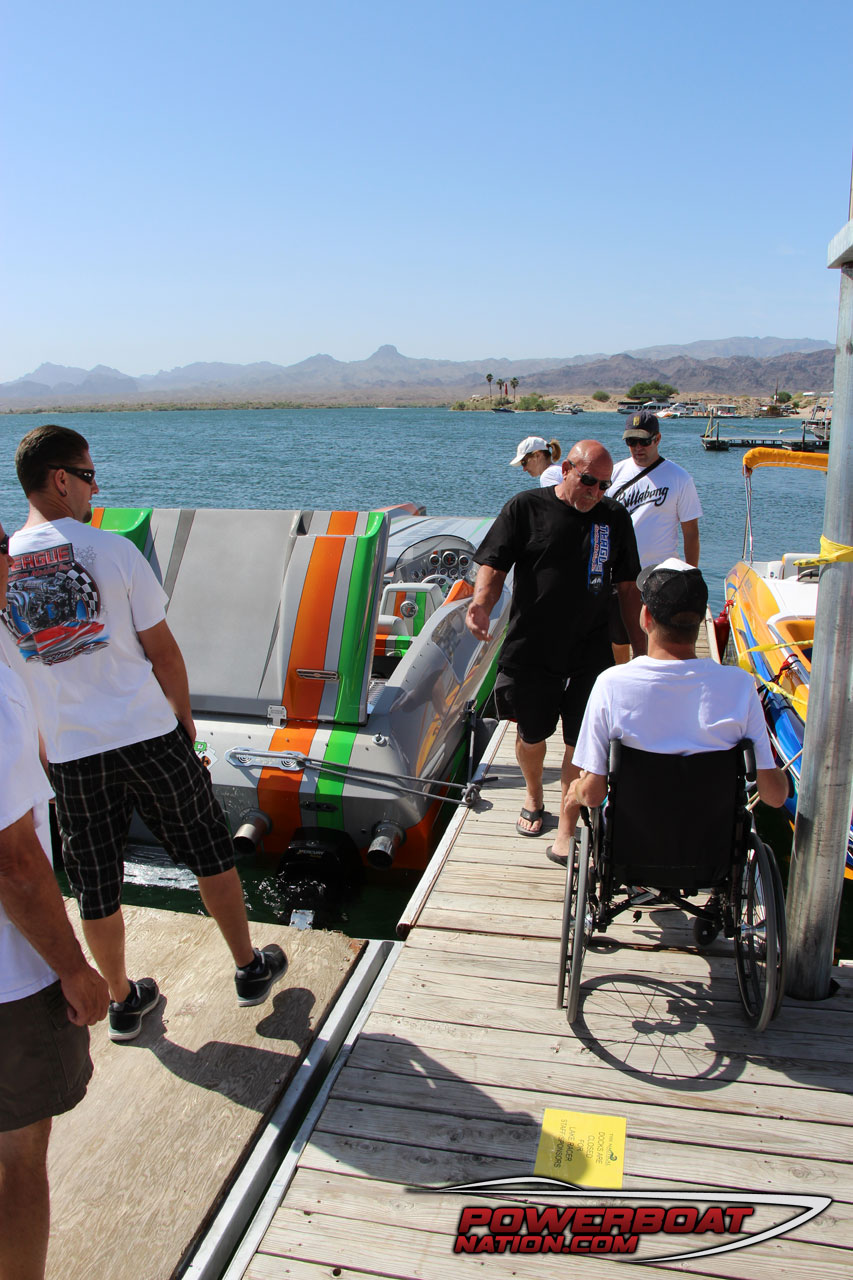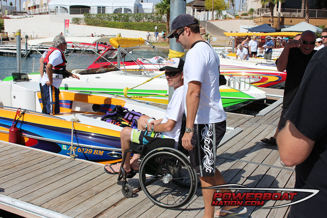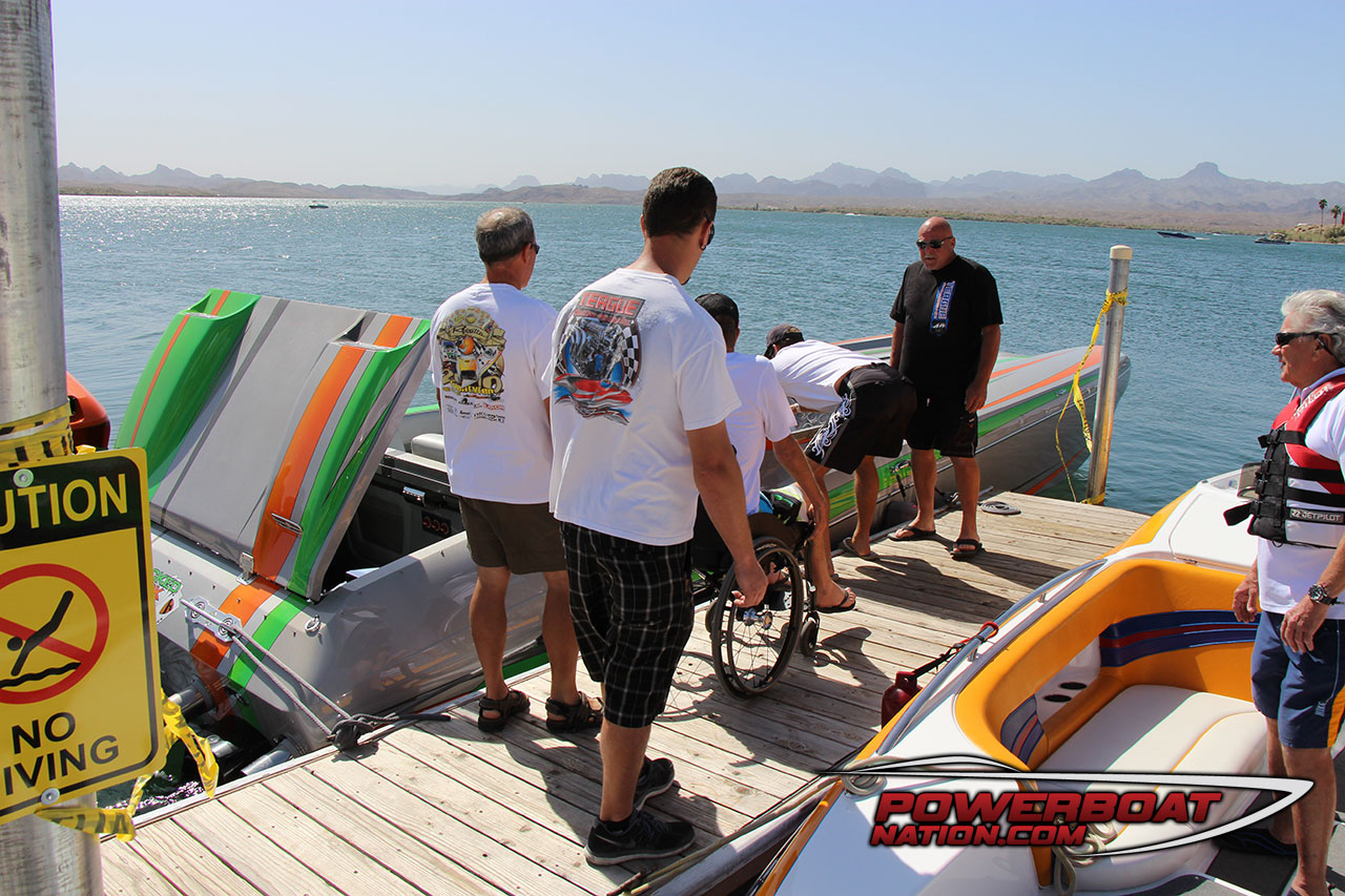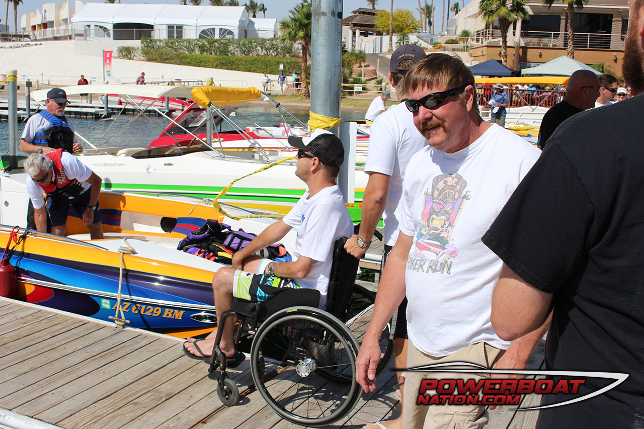 The Desert Storm Poker Run is underway and to kick off the event local boaters and poker run participants from afar turn up to support the 2nd Annual “Krusin’ for Kids” event. Under-privileged and special needs children and adults were given boat rides around Lake Havasu. 18 volunteer boaters took their special guests out for a ‘Kruse’ around the lake, starting at the Nautical Beachfront Resort/Turtle Bar boat docks, and back again to the Nautical’s pool area where they enjoyed a fun-filled day created just for them. The DCB presence was strong with 9 boats in the 18 boat fleet This wonderful ‘Krusin’ for Kids’ event was coordinated by Cherilyn Teague, Lake Racer, and New Horizons.