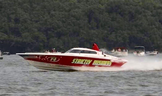 Class 3 entries ran eight laps for a total 44 miles, as Strictly Business and Advanced Marine traded first-place positions. Strictly Business, with veteran racer Johnny Stanch, was victorious in his 35′ Fountain