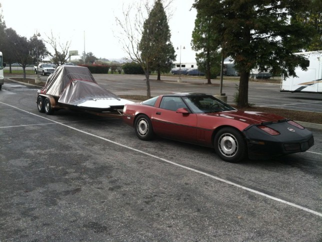 It seems this gentleman that owns both this corvette and the blown gas Sanger jet hydro were on the mission of his life. After a brief interview with the owner we were told that he had found love on the internet and that he was on a mission to be with her. The problem being she was on the east coat and he on the west coast in California. Refusing to leave behind his true love, the boat he set off to have a hitch installed and haul the boat east bound to Florida in the dead of winter during the holidays. We kept tabs just to make sure he made it and he did. 3200 miles in four days. Crazy, Insane, or just in love either way could you imagine crossing mountain pathways with a corvette and hydro behind you in the snow? I bet it makes the weird twitches that boat sends out during acceleration seem like a gentle fall breeze in comparison. Well in a last note it seems the woman was not all she was cracked up to be or maybe just a crack pot we are told. The owner now resides in Florida and says at least I’ve got my boat.