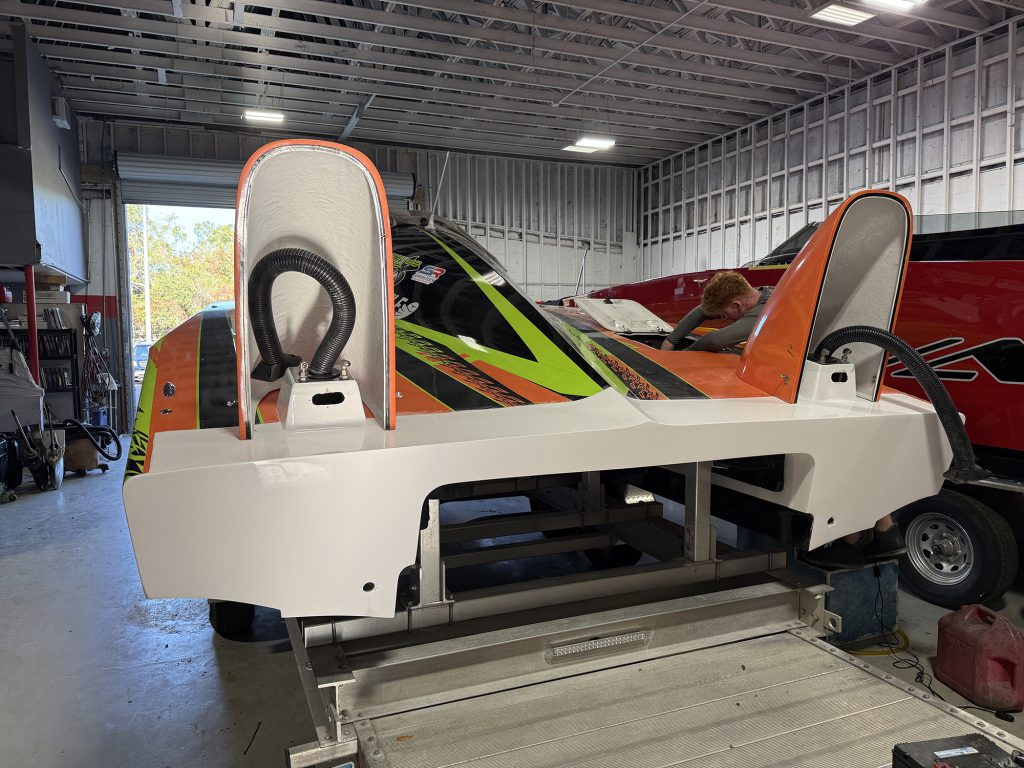 Owned by driver Jeremy Tschida, the Super Stock-class Wozencraft Insurance Boat—on the other hand—needed a new transom and is now ready for re-installation of its 300-hp outboards on new brackets.