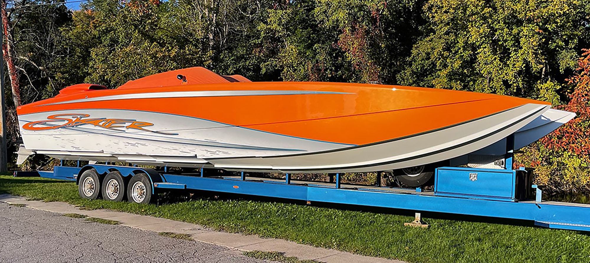 “Upstate Powerboat exceeded our expectations with the boat,” Grants said. “Phil and his team created a masterpiece of color. And their repair work was excellent. The sheer size of a 40SS is impressive but when you add three dimensional colors as vibrant as they did, it’s simply awe-inspiring to see.