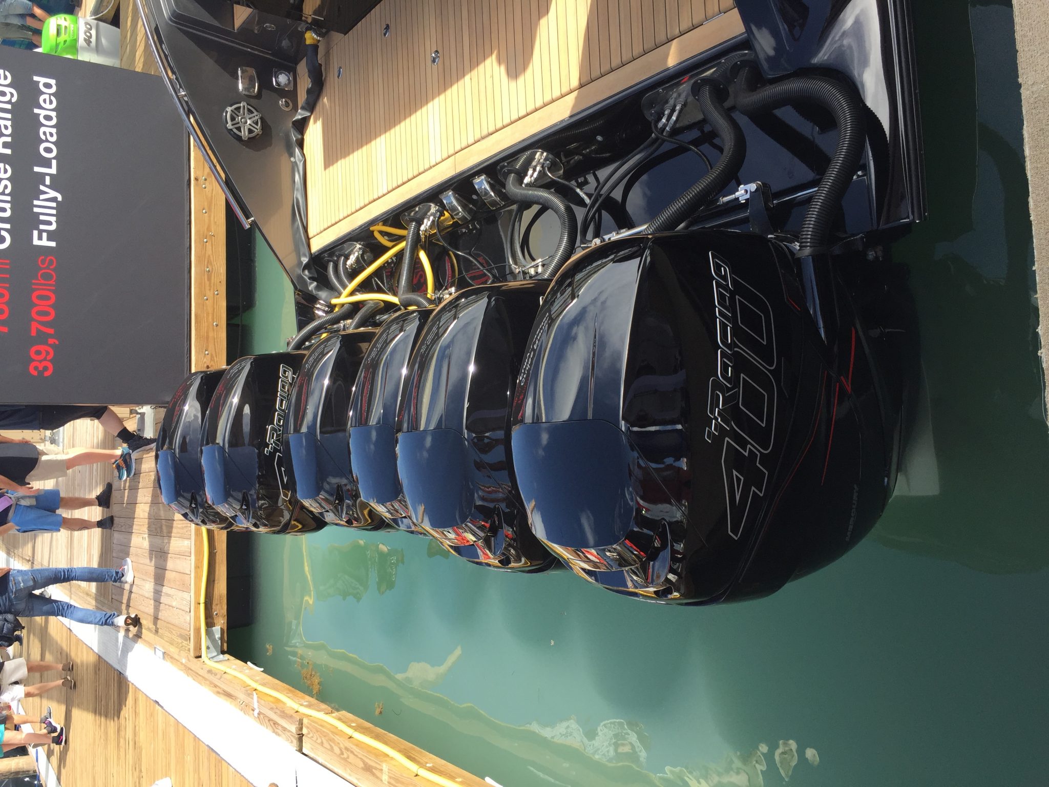 As reported earlier on Powerboat Nation, Mercury Marine gave the industry its first look at a new outboard engine: the 400 Verado, which builds on the success and popularity of Mercury’s 350-hp Verado outboard engine. An additional 50 hp has been coaxed out of the supercharged 2.4-liter, in-line six-cylinder powerhead; it’s said to offer superior lightweight reliability and durability, and share many features with the Mercury Racing 400hp outboard. On the Mercury Racing side, the company unveiled its 1,100hp Competition 9.0-liter twin-turbocharged engine that will be the exclusive power for Powerboat P1’s offshore racing series. Its Quad Cam Four Valve (QC4V) valvetrain allows the engine to produce 1,100 horsepower at 6,500 rpm on 89-octane pump fuel.