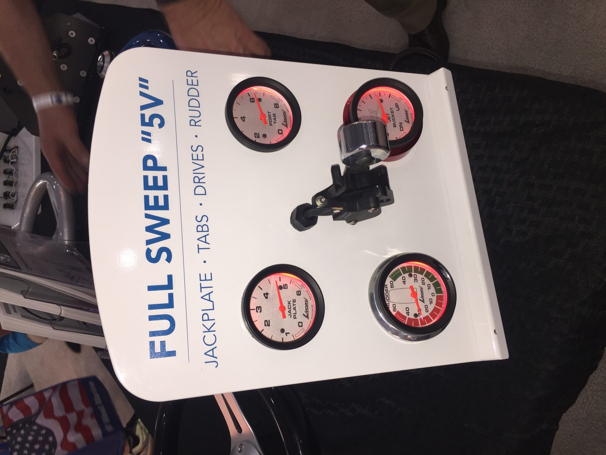 Other equipment seen for the first time in Miami: Livorsi Marine’s “Full Sweep” 5-volt gauges for position and pressure applications (indication for rudder, trim, trim tab, jackplate, jet pump bucket, throttle position, throttle percent, etc.). Livorsi also showed off its brand-new 1025 Trim Tab, offset for triple and quad engines—the cylinder is not in the middle, but off to one side. The tab features a severe cut to clear the outboard engine’s props and cooling systems, so it won’t interfere with aeration, and will actually maximize water cooling, on triple and quad engines.