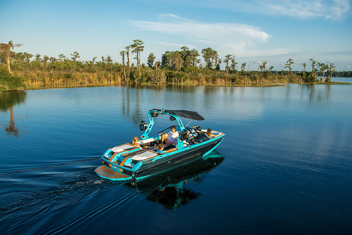 But there’s more to the Super Air Nautique GS22E than just its eco-friendly packaging. The GS22E is nevertheless a luxury experience exuding modern minimalist elegance meant to turn heads whether you’re cutting waves on the lake or chilling off the coast for a sunset ride. As with all Nautique models, the GS22E is customizable from color, trim, and accents, to multiple seat configurations and storage space options. This combined with its advanced hull design initially developed for the G23 Paragon, the 22 foot GS22E is not to be understated.