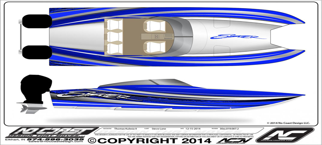 This brand new model is scheduled to be delivered in April of this year and the expectation is a great handling Catamaran that will be capable of 120 MPH with super reliable outboard power. SKATER will be painting the hull in house and you can check back at PowerBoat Nation for updates and images of the boat as production continues.