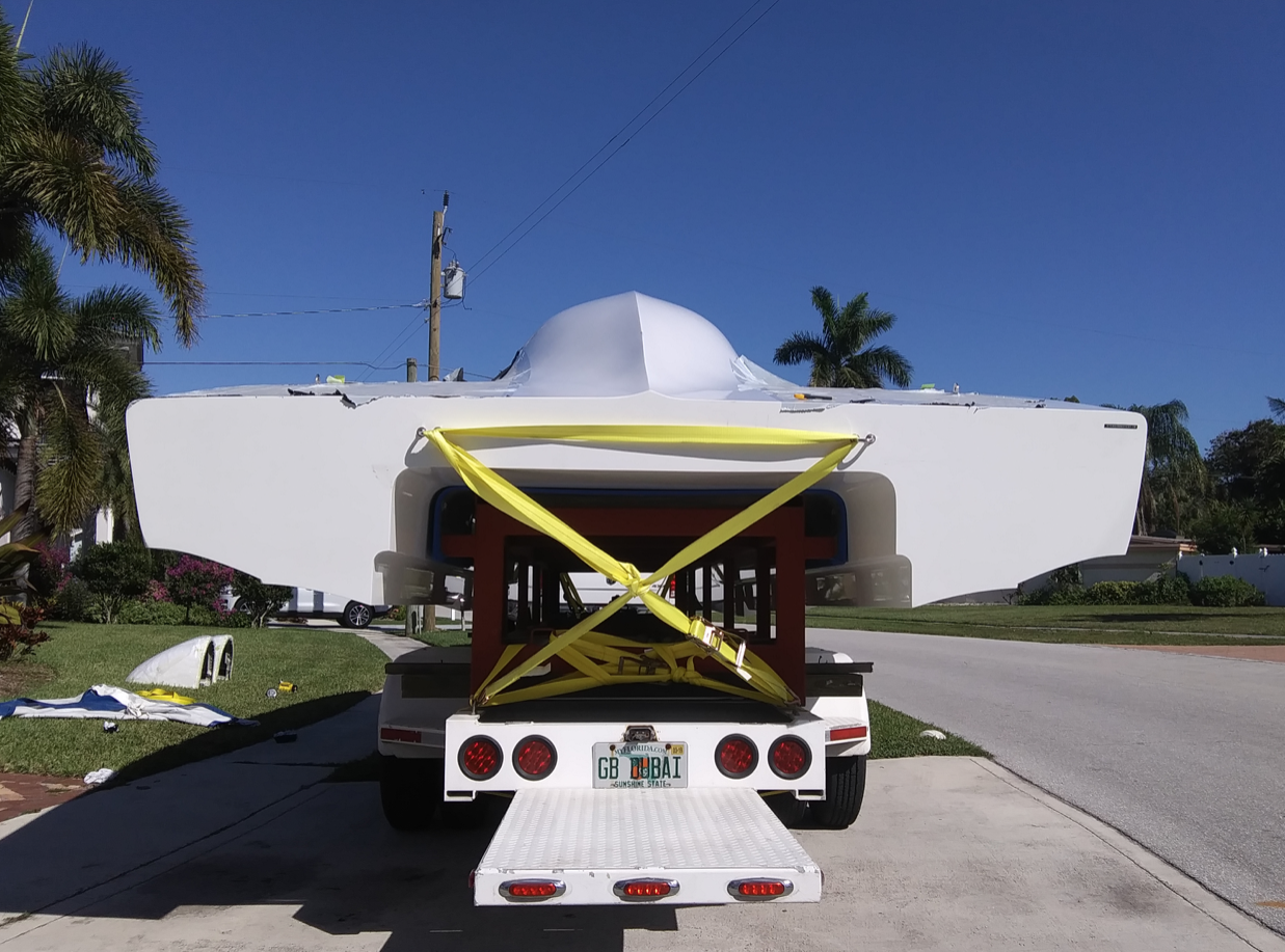One of powerboating’s winningest and most enduring champions, Ballough picked up the boat near his home in Jacksonville, FL, this week, and immediately began removing the shrink wrap and spending the next hour admiring the great work Victory did on the hull. He will take it to TNT Custom Marine (North Miami, FL) on Monday, March 25, to have it rigged and powered by twin Mercury Racing 300XS Optimax outboards, the required powerplant for his offshore class, Super Stock.