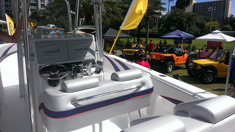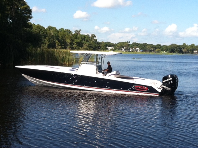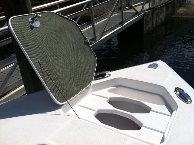 This boat has a large center console cabin with a molded lounge on top. The console contains a full head, large lounge, sink and shower. Jay said he has made the fish boat pleasurable by making sure there is plenty of room below and having room for at least two rows or bolsters for secure and comfortable seating. It remains completely versatile and includes, a large live well, rod holders.Two large storage/fish boxes and a innovative built in trash can something typically overlooked by other brands.