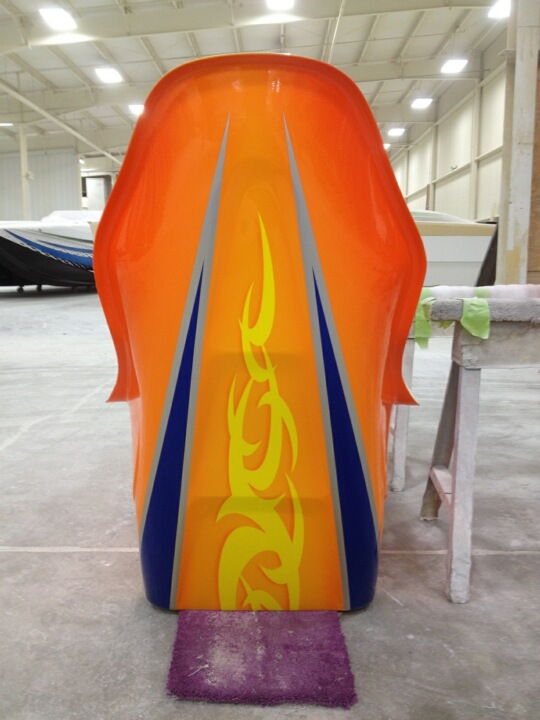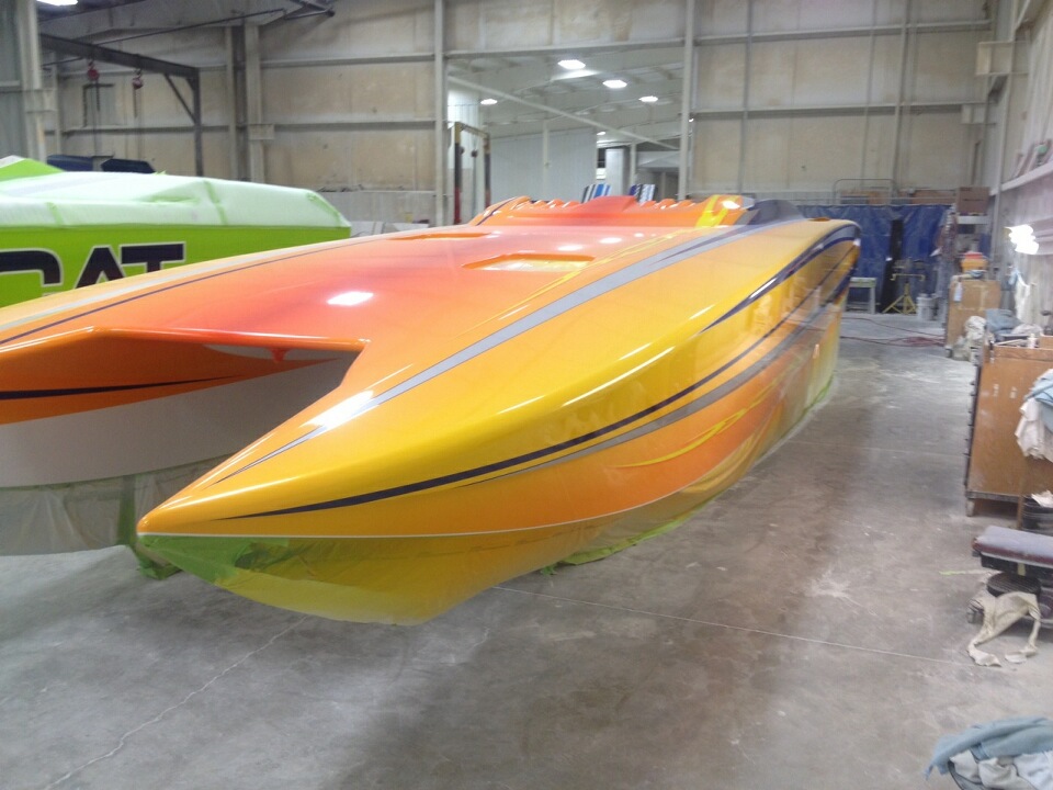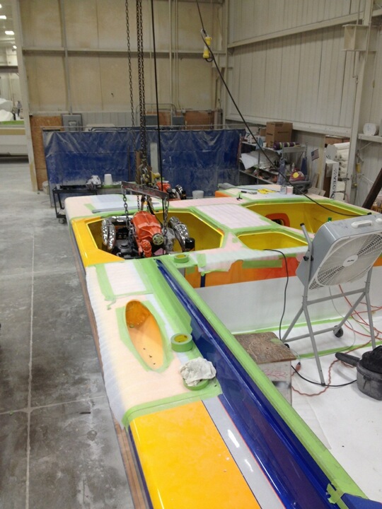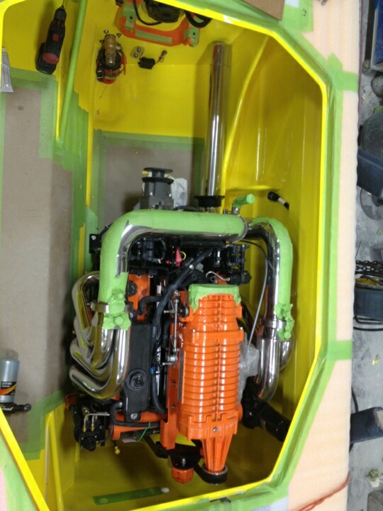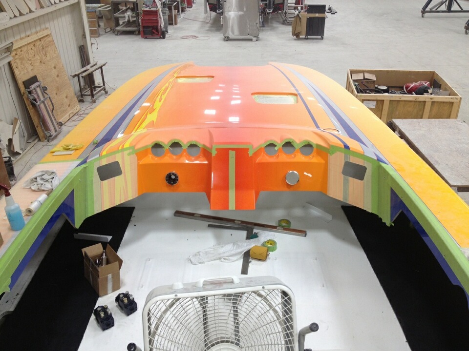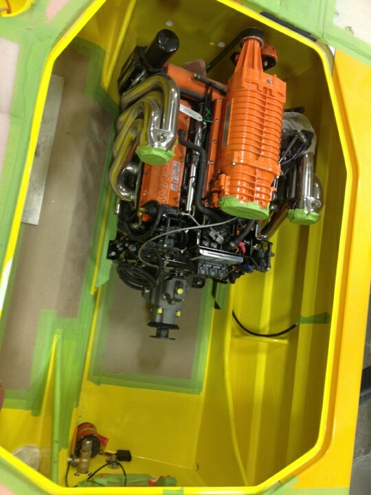 A custom painted orange Mercury Racing 700 SCi being dropped into a brand new 388 Skater and coupled to Mercury Racing SSM VI drives. Could this be? Why would this be? And, if it is true- it’s cool and I like it. Finally, a boat that could have 500 plus hours on it before the engines have to come out.