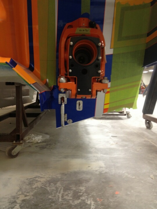 I spoke to Blume and sure enough its true and I applaud the idea, with an estimated top speed of somewhere about 130-135, and with the manipulation of gear ratio and propellers the speed of this boat will be limited to not more than 110. The new owner and the physical geography of the new owners boating area dictates a top end and cruise speed that will be not more than this, not to mention considerable savings on his insurance costs. The boat will get up accelerate to speed quickly and cruise for endless hours of comfortable fun with this set up.