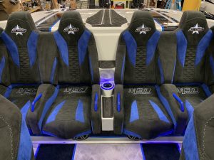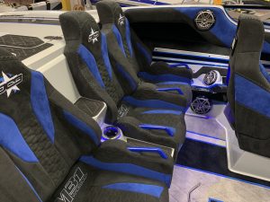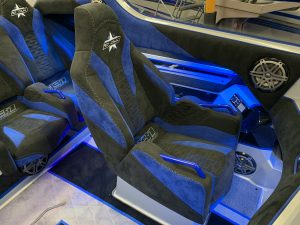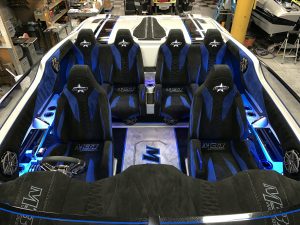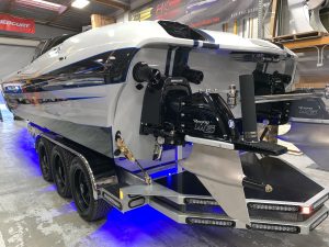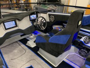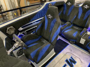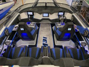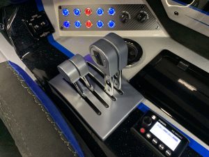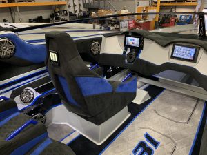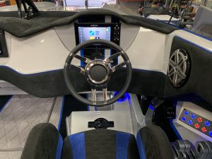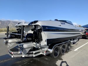 Douglas, who owns the DTI Trucks dealership in Wheat Ridge, CO, says he’s stoked by the Widebody design, which features an innovative interior, expansive seating configuration with Alcantara fabric, all-digital displays and numerous other amenities. “The gelcoat and the overall look of the boat is incredible, and the way they did the interior is amazing as well,” he told Powerboat Nation. “They just did a stunning job on this boat.”