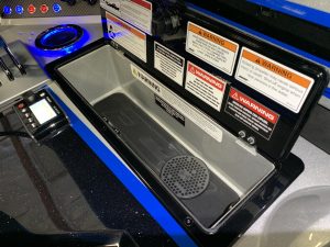 Douglas was 100% involved in his M31’s creation, and credits DCB for keeping him in the loop and flexible during the customization process. “Nothing’s out of reach—they never say no,” he says. “If you ask for something, they want to deliver. I picked out everything, from the gel and the colors on down. Those things are extremely important to me. I bought a silver 4×4 SportChassis last year, and wanted the boat to match the truck.”