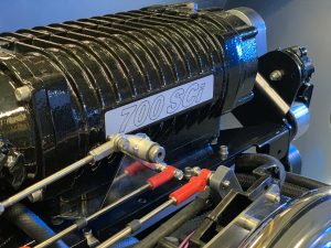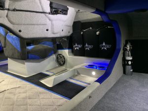 • Stage IV stereo (full custom) – Fusion head unit, four JL Audio amplifiers, 12 JL midrange speakers, four 12” JL W6 subwoofers.