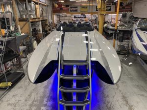 How fast does the boat go? “It did 135 mph right out of the box, but I’m sure it’ll get up to 140+ once I’m able to put a few hours on it,” Douglas says.