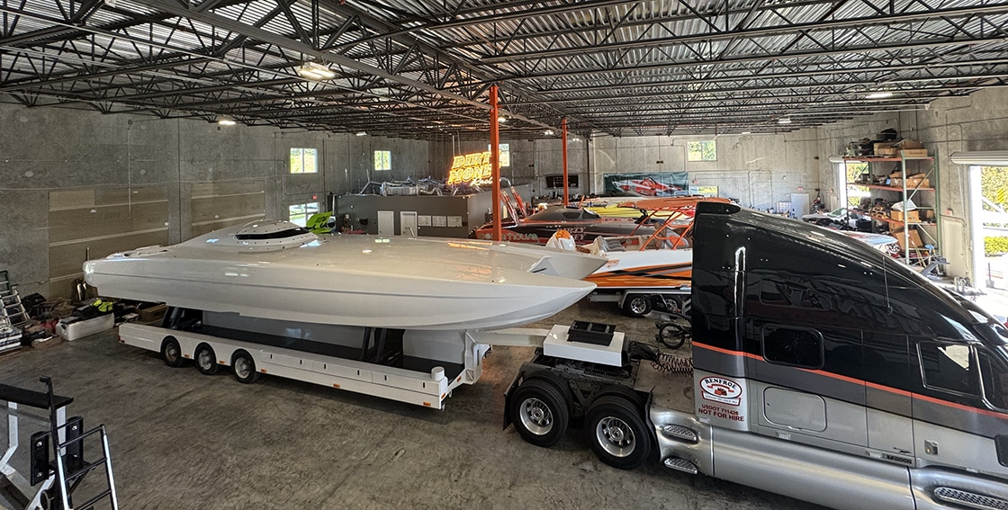 Bobby Adams and the Dirty Money crew have been working on the 45-footer since it arrived at their shop.