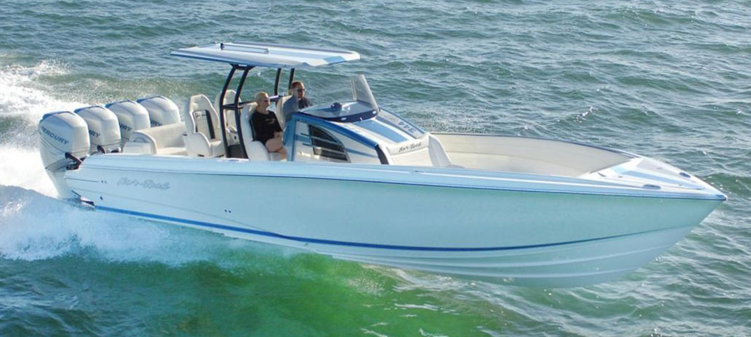 The bulk of the new sales are Center Console’s. A mix of fish boats and Non Fishing Fun Craft. The recent Quad 300, 344GT ran over 85 MPH and according to Nor-Tech, the boat features four hi back bolsters and a high performance shortened T-Top. Top speed was recorded at 85 MPH.