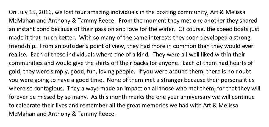 A year ago we lost four members of our boating family. We still miss their presence and energy but they are survived through their family and friends that continue to remind us why we miss them dearly, both on and off the water.