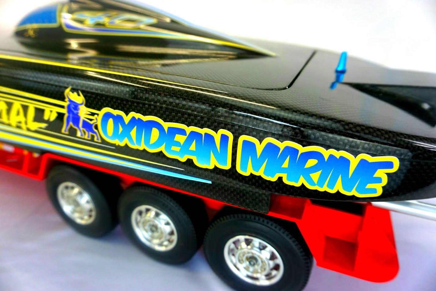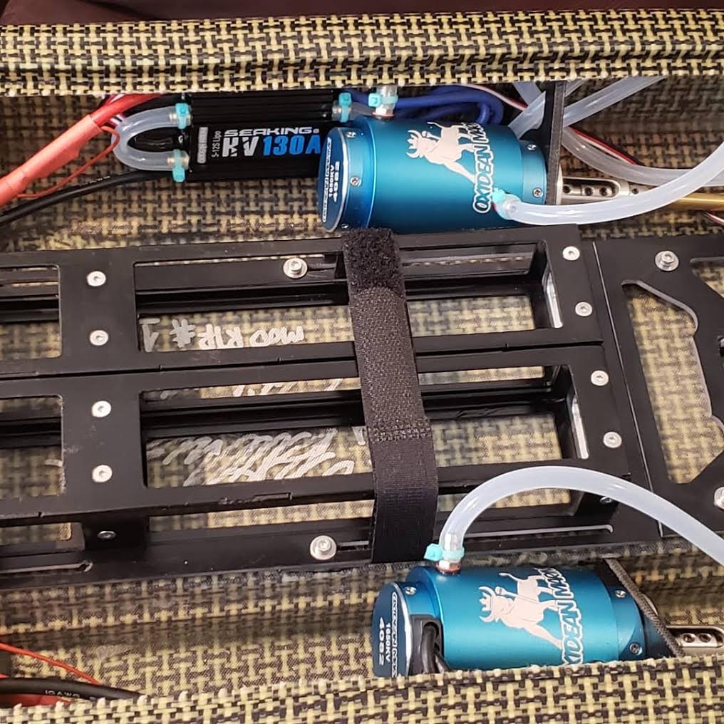 Oxidean uses high-quality composites for its RC hulls, which are hand-laid with full epoxy resin. These boats are constructed using high-quality carbon fiber and carbon/kevlar aramid weaves. Oxidean Marine doesn’t even offer fiberglass hulls, which sets their creations apart from most any other mass-produced RC boats. He uses 6061 aircraft-grade aluminum hardware and high-grade screws to prevent corrosion. The hulls look absolutely breathtaking in person, displaying beautiful workmanship and finish unlike any other boats in their class. These boats are capable of reaching blistering speeds right out of the box, from 60-80+ mph. That makes them the very fastest in their class the world over.