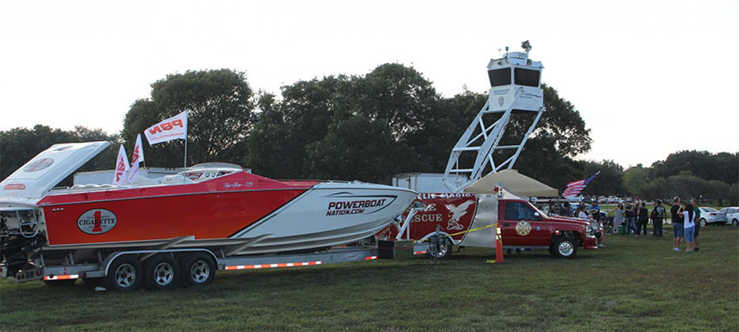 On the grounds in front of the stage with the Charlie Daniels Band, Bad Company, and host of other local bands the crowd of 40,000 plus were able to see the PowerBoat Nation 38 CIGARETTE RACING TEAM Top Gun. A 42 and 52 MTI Catamarans set up by Xtreme Powerboats of Miami, and a 36 XRT Sunsation presented by Doller Offshore.