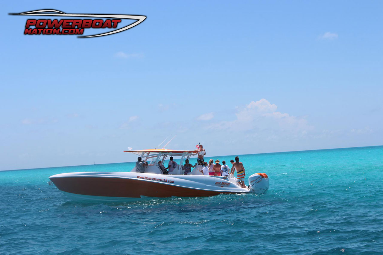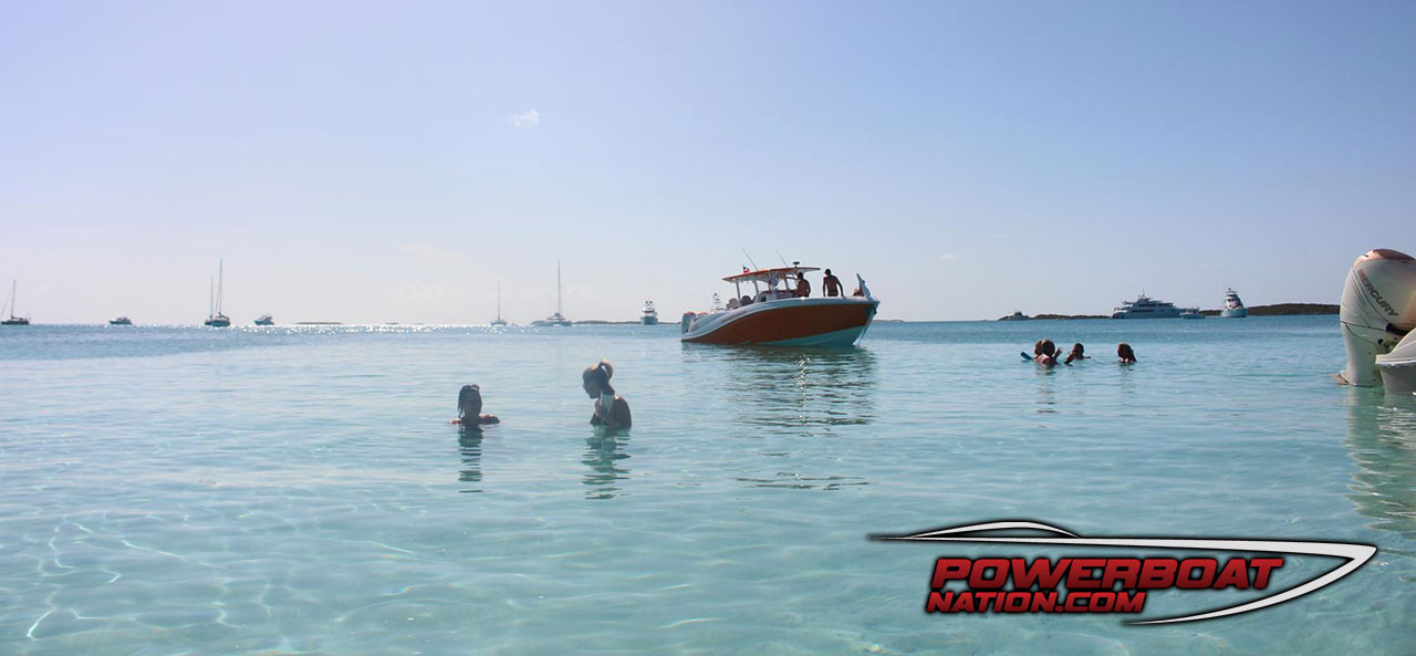 This trip was truly powerboating in Paradise and showed off how great the new Center Console Sport Boats are for this type of adventure. We were able to get out and back fast thanks to quad Mercury Verado 300’s and a 400 gallon fuel capacity on the 39 Nor-Tech. Running at 70 mph our fuel burn was about .5 MPG with 10 people on board, and a great 1.1 MPG average when I slowed down to 50 MPH for the straight run home from Nassau back to Port Everglades.