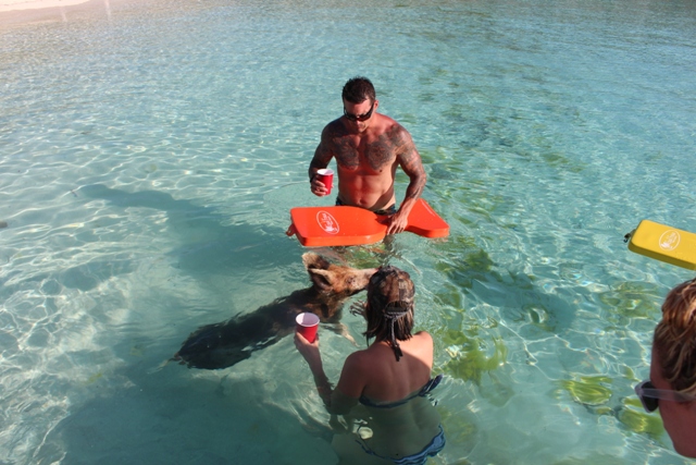 Friday was a relaxing pool day and many club members enjoyed all the resort activities including a swim with the Dolphins adventure. Saturday we fueled up and ran hard to Staniel Cay for a great beach day where we were greeted by swimming wild pigs swam out to meet the boats as we came in. The run back was beautiful crossing the shallow bank right at sunset
