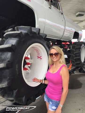 Mud wrestler or maybe monster wrangler you make the decision with your own eyes. Yep, that’s Brittany not some powder puff princess but actually a semi pro mud truck racer. Driving as part of the JW Davis team from aboveaveragetrucks.com the sister company to Davis Auto Sales one of the East Coast’s custom truck leaders who has probably put more used Ford F650, International CXT’s, and Freightliner’s under our legion of boaters than anyone.