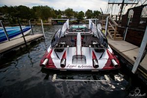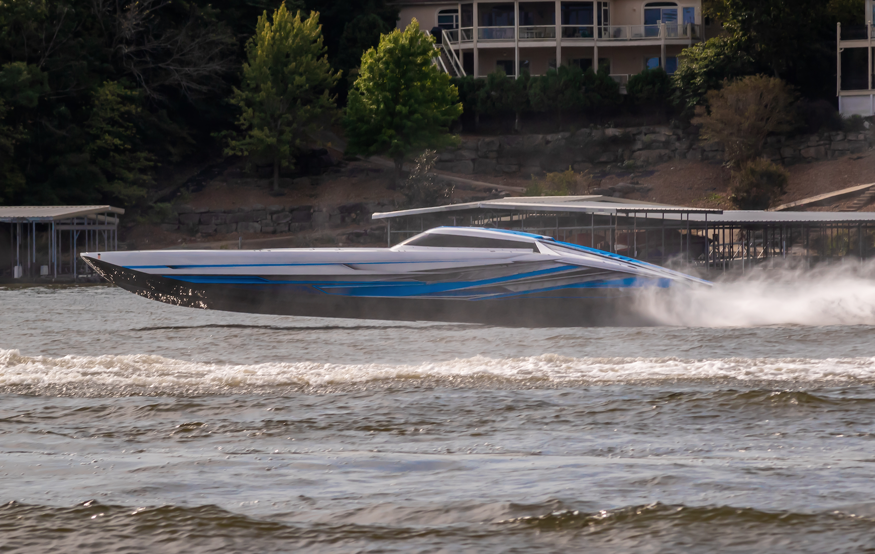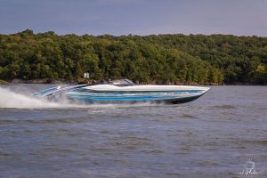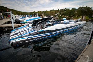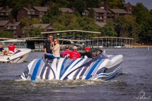 About 75% of participants were from Missouri and surrounding states, but some came from as far away as Michigan, Oklahoma and even Arkansas. Among the attendees were Burton Kirsten of Chesterfield, MI, with his 46-foot Outerlimits, as well as Matt Mawby of Bentonville, AR, with his 39’ Cigarette GTX. “We had a nice mixture of vee bottoms, center consoles, catamarans, closed boats, open boats—a real cross-section. We even had a canopied raceboat, the 388 Skater HP Mafia, show up. It was a really neat deal,” Manire said.