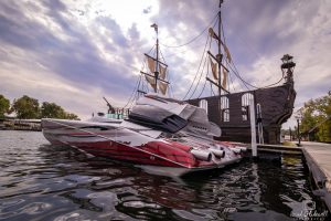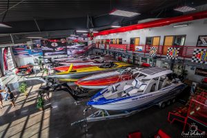 As for the famous Performance Boat Center raceboats—the 42’ MTI Jimmy John’s Supercat entry and the 32-foot Doug Wright Auto Alert Super Stock class competitor—they were left on the trailers as they undergo testing and prep work in anticipation of the OPA bout in Fort Myers Oct. 10-12.