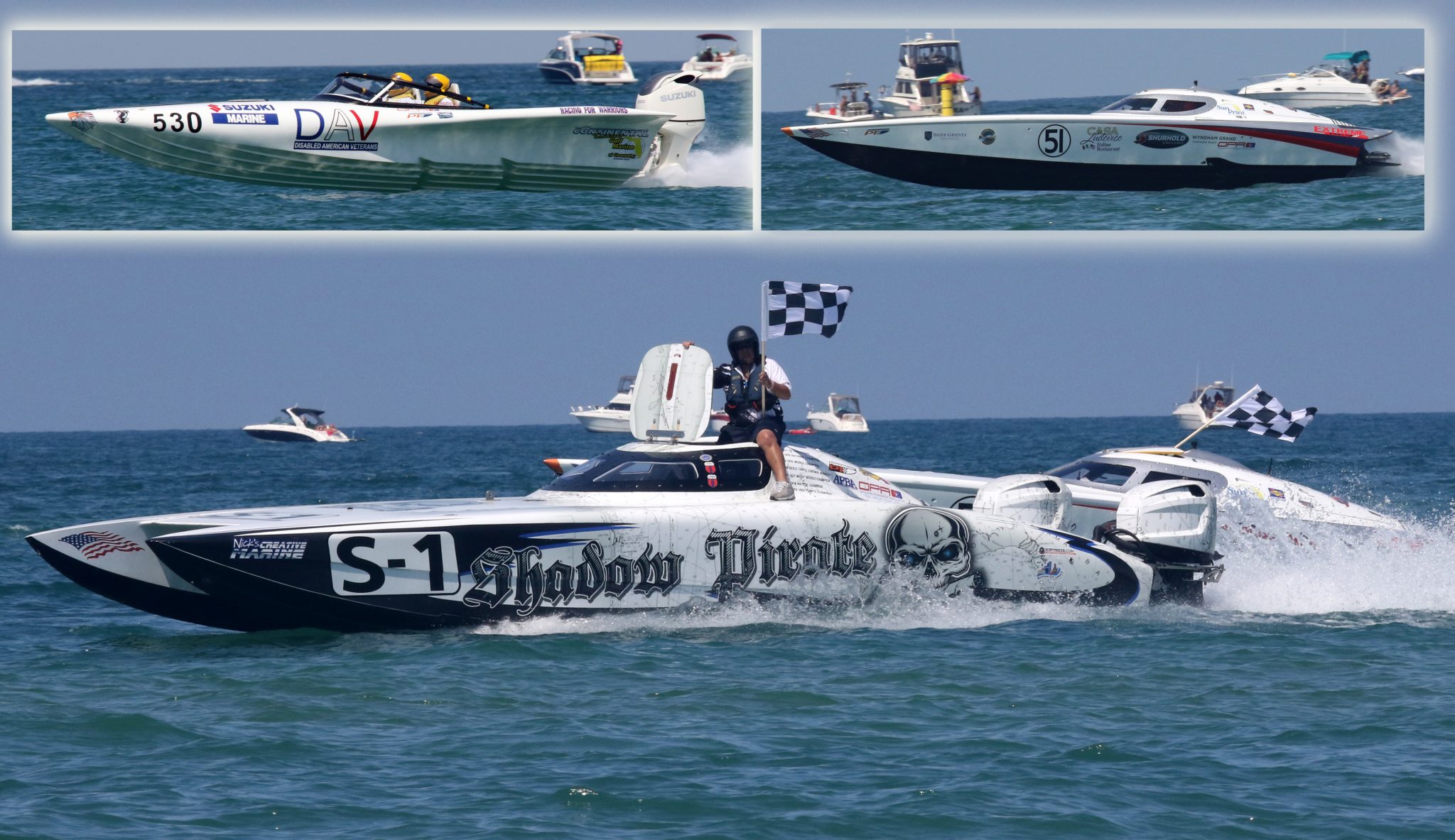 In Super Stock Class, Shadow Pirate, owned by Nick Scafidi and throttled by Porta, got off to an early lead and never looked back. “It was a great day. We had a good start and we continued to stretch out our lead the entire race,” Scafidi said. The hydrodynamics on Shadow Pirate helped propel the boat to three World Championships and two National titles since it hit the race course. “We designed the bottom to turn better, accelerate quicker and run faster than the competition and it paid off today,” Porta said.